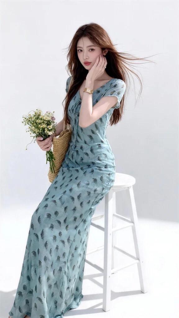 米色连衣裙简直是优雅气质的代名词!就像袁冰妍天台写真里穿的那件,小V领凸显纤细脖
