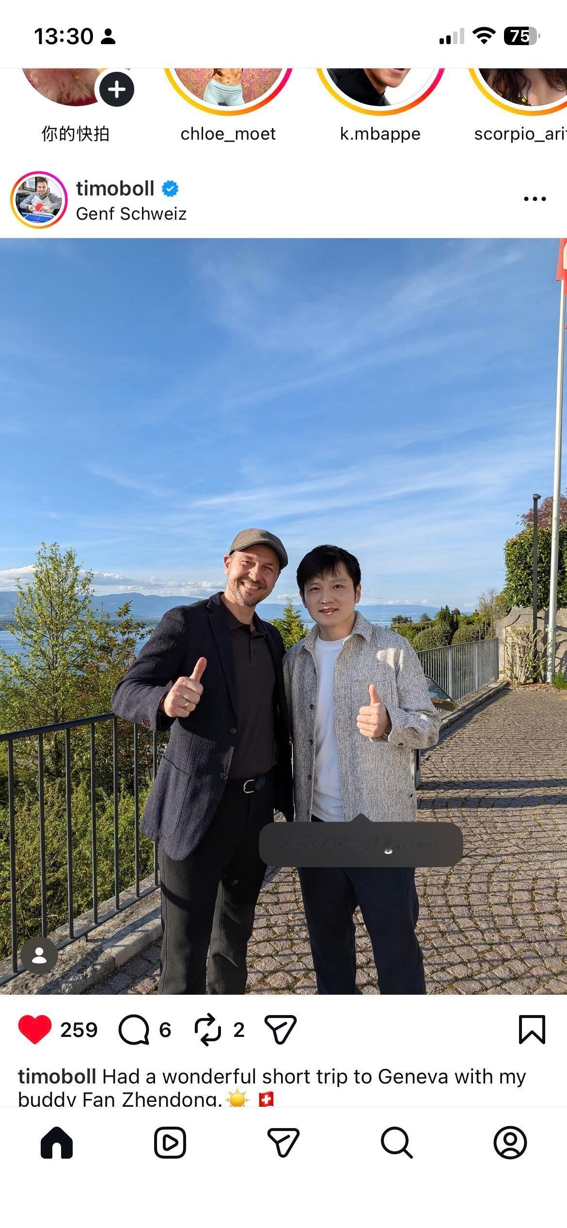 樊振东波尔日内瓦旅行波尔ins更新 和樊振东一起去日内瓦旅行很遗憾伦敦看不见东哥 这么优秀的球员 在自己职业生涯的巅峰无法参加这么重要的国际赛事为国争光 心里又总说不出来的滋味总之 希望东哥开心快乐健康每一天!