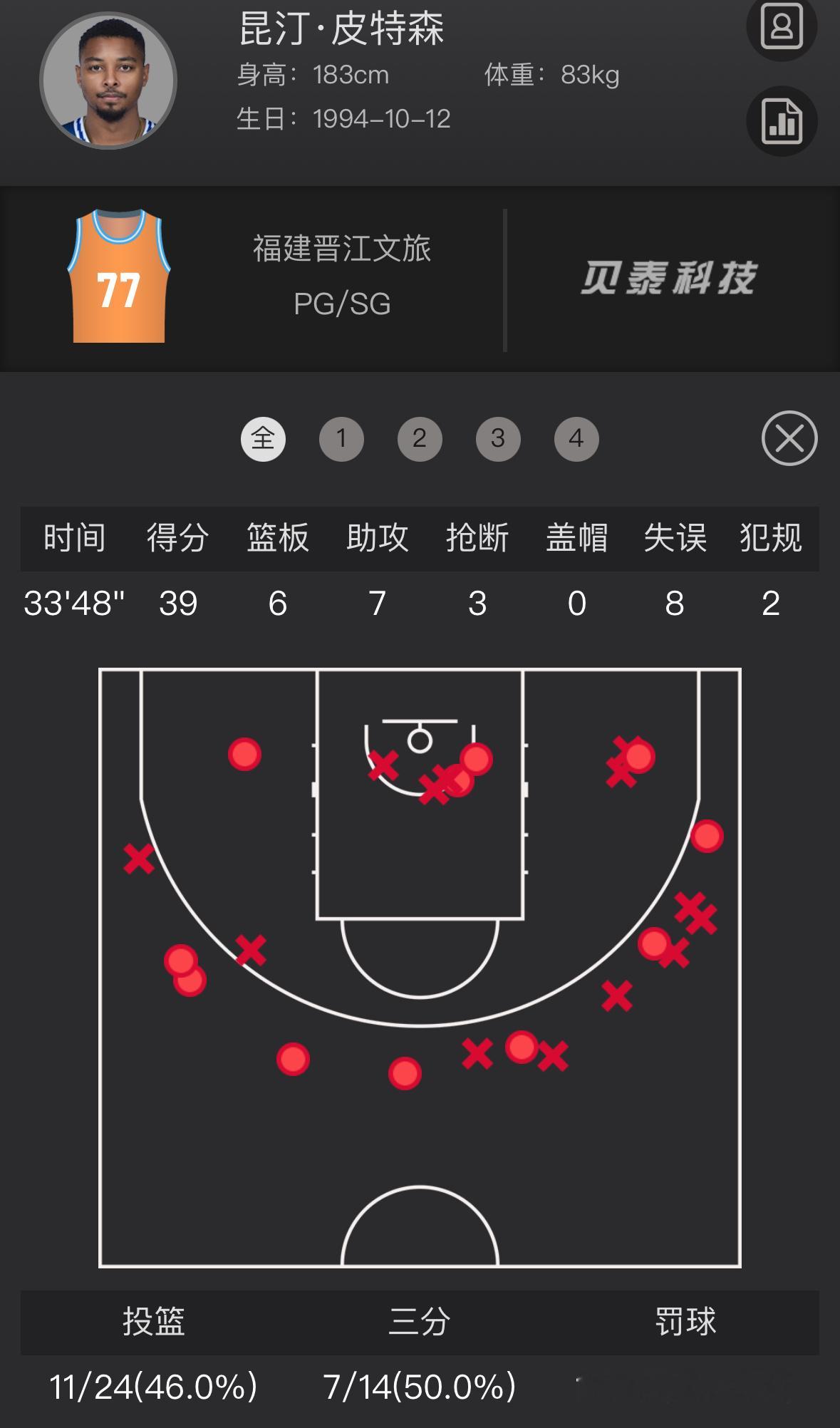 皮特森爆砍39分,下半场30分,带领福建客场19分大逆转广东(下半场福建52比30广东)。