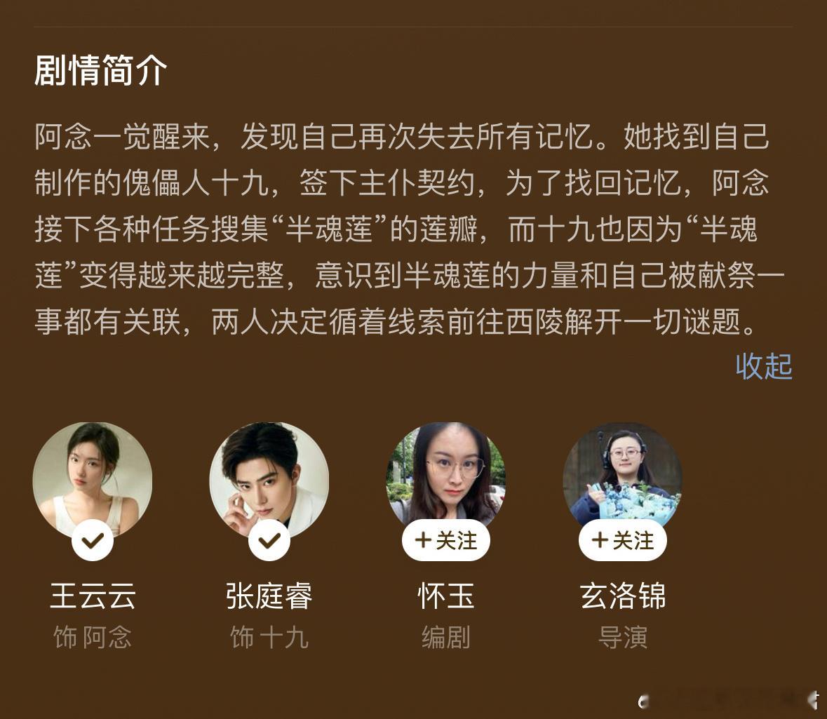 仙侠短剧《古剑奇谭三之念念不忘》主演:王云云、张庭睿播出平台:浙江卫视上星改编自游戏IP《古剑奇谭三》出品公司:杭州旭势文化传媒