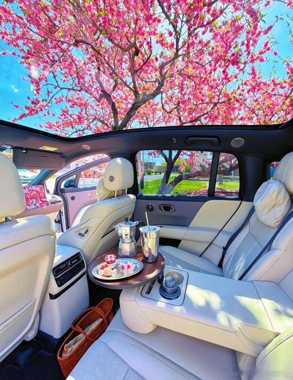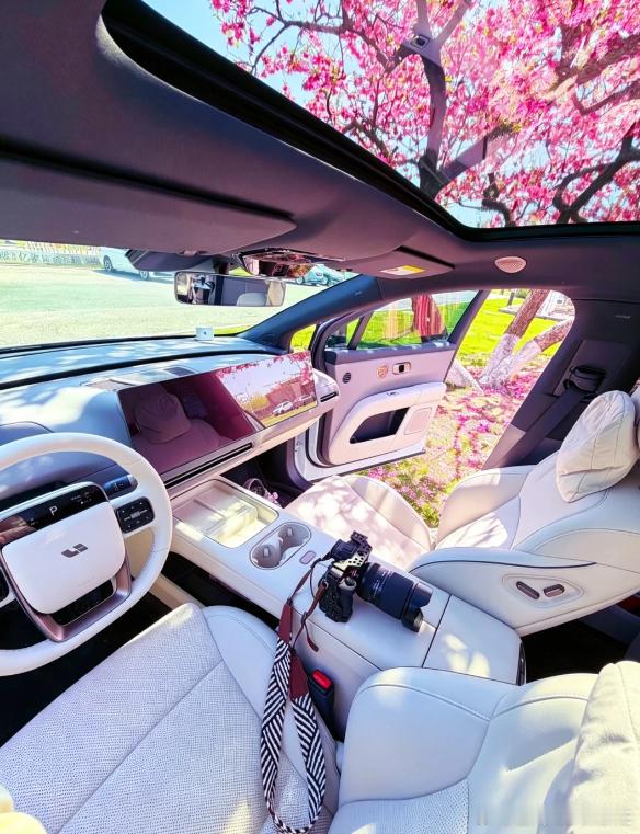这就是全景天窗最高级的用法了吧,透视看樱花!