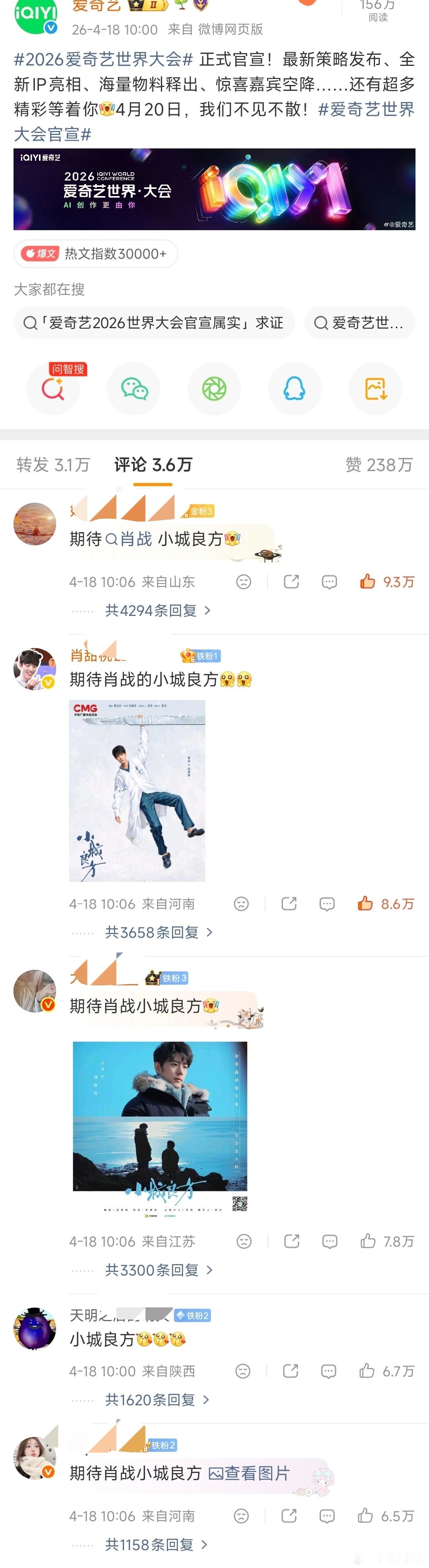 🥝官博和新浪官博世界大会的前排,都被肖战粉丝拿下一整天了且领先优势越来越大,手搓到将近10万断层内赞,🦐人头数太可怕了也