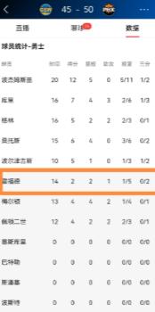 作为勇士队的关键老将,霍福德本场以替补身份出战,前两节一共上场14分钟,可进攻端完全找不到状态,投篮5中1,三分球2中0,只拿到2分,场上正负值更是-5,也就是说他在场上的那段时间,勇士净输5分,这种表现,和他平时的稳定高效判若两人。