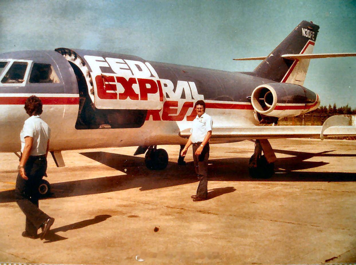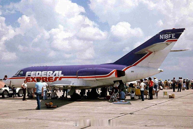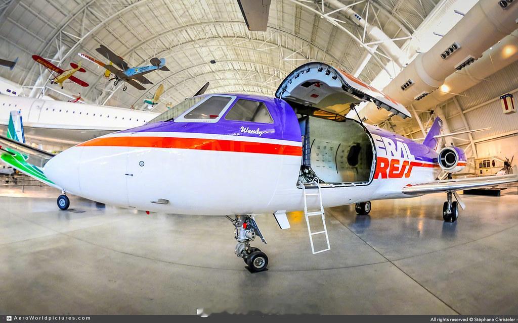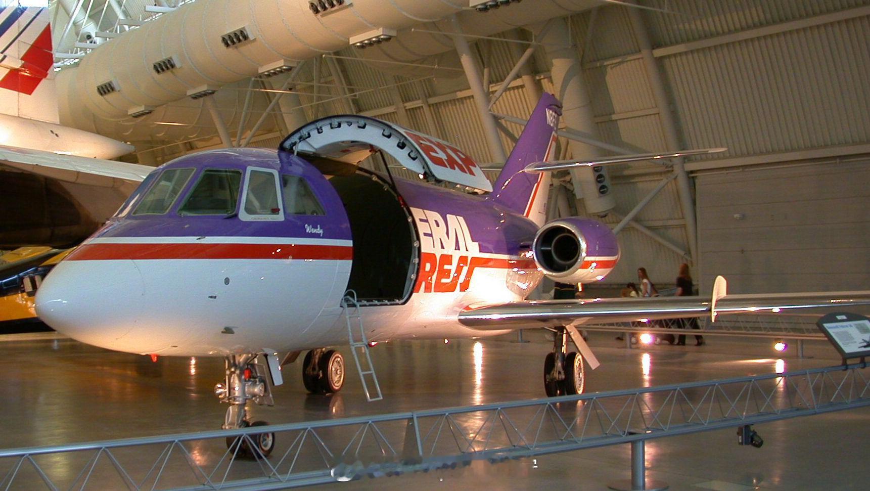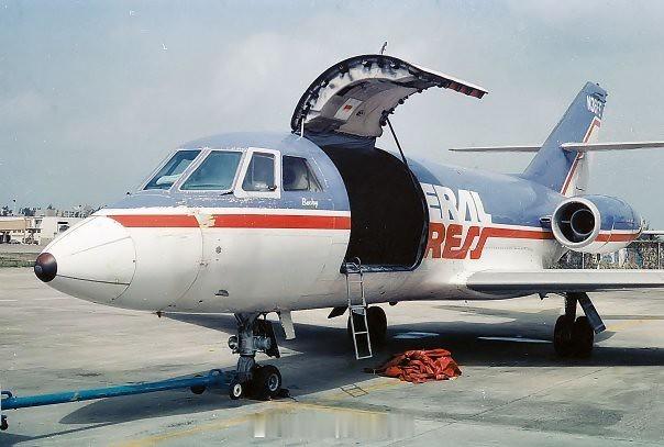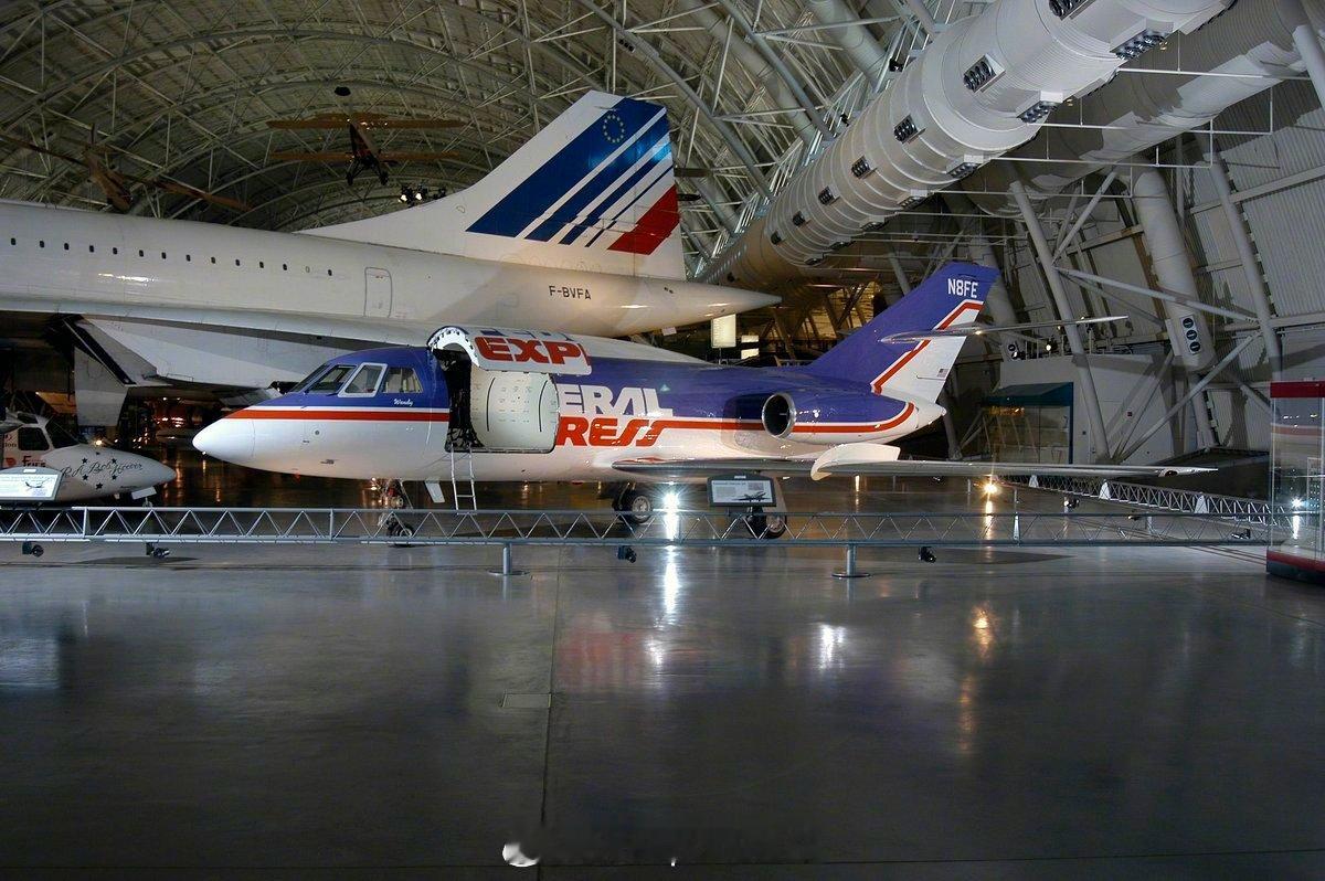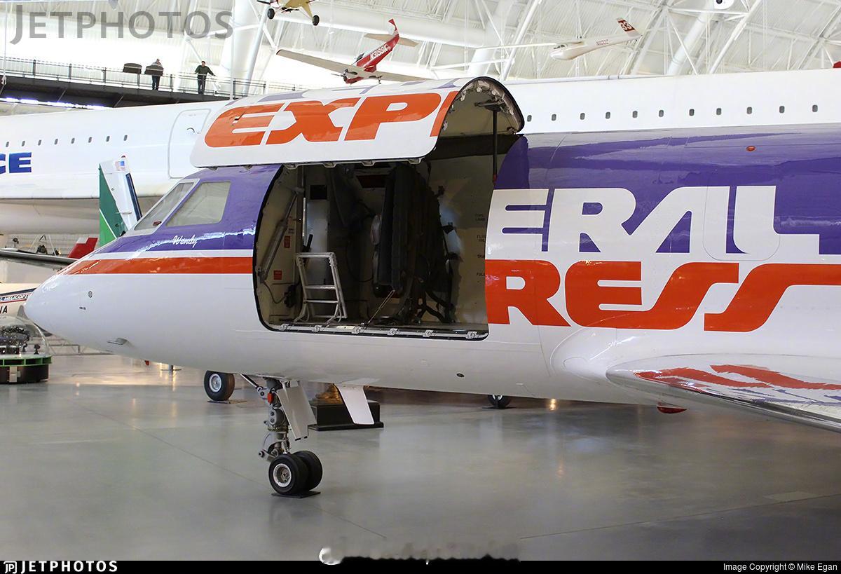 照片中的历史 1973年4月18日,美国FedEx 公司运送了它的第一个航空包裹,创造了一个新的航空类别:专属航空快递承运人。这一创举采用的是这架达索猎鹰 20货运机 ,目前陈列在弗吉尼亚州的乌德瓦-哈兹中心。