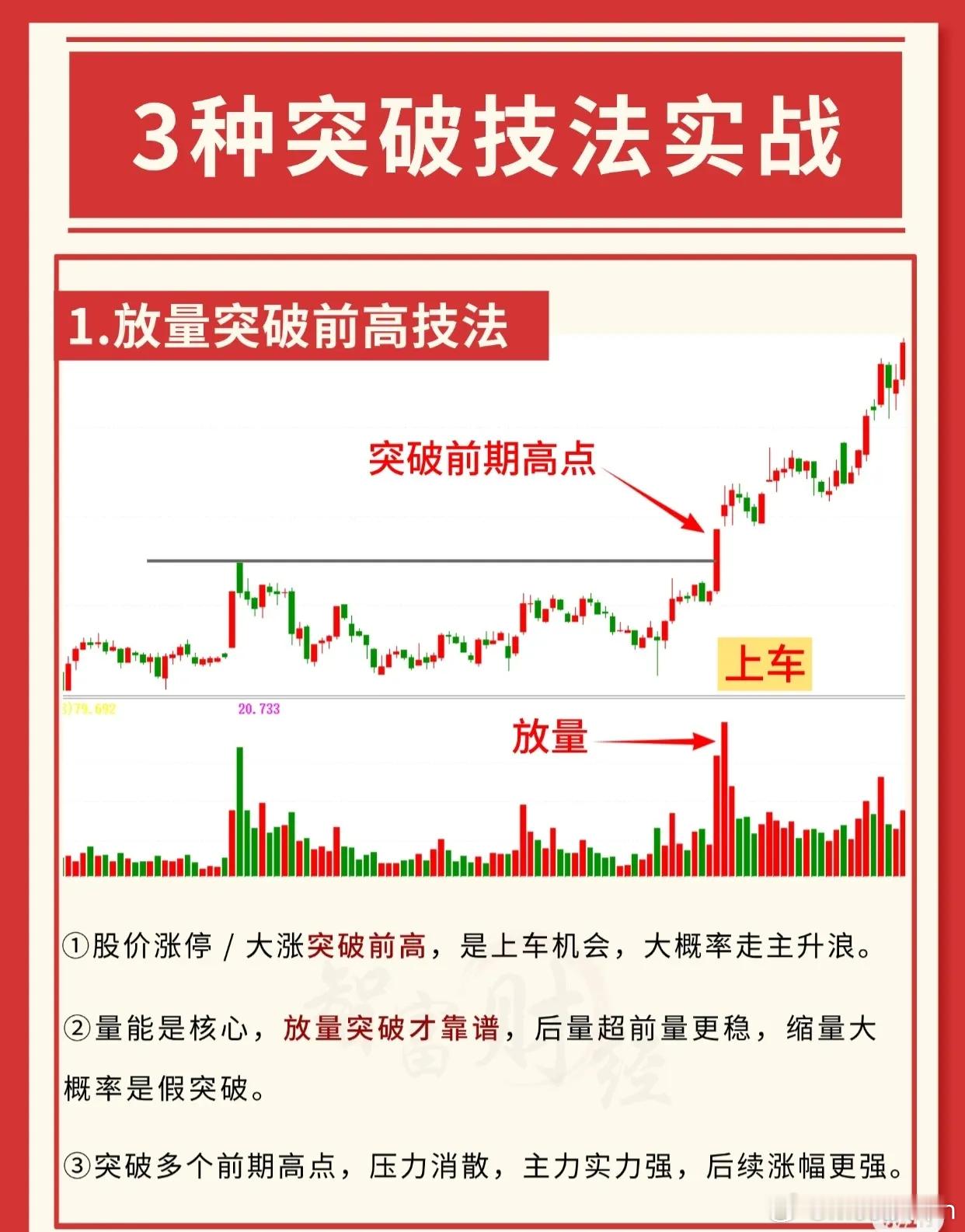 - 量能是核心判断点:突破时必须放量,且“后量超前量”的突破更稳妥;若突破时缩量,大概率是“假突破”(资金推动不足,难以持续上涨)。- 突破的有效性增强:若能连续突破多个前期高点,说明上方抛压被逐步消化,主力控盘实力强,后续涨幅往往更可观。