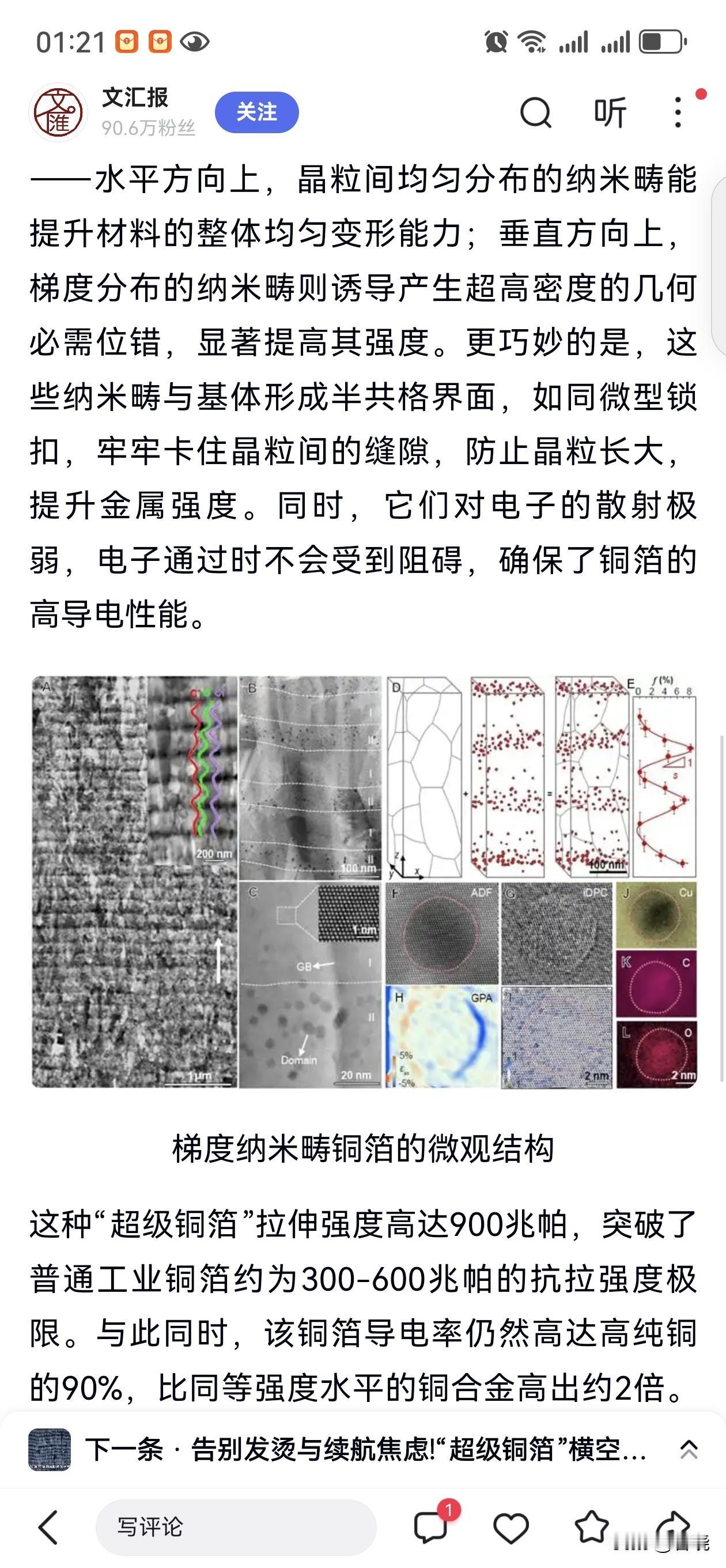 央媒再表扬“沈阳材料科学国家研究中心”再次取得重大突破。 超高强度、高导电性和优质热稳定性三维一体的“超级铜箔”在沈阳研制成功,这将为未来的AI算力模块、新能源汽车能源模块、网络通信等领域带来革命,无疑沈阳将是新科技革命的引领城市。
