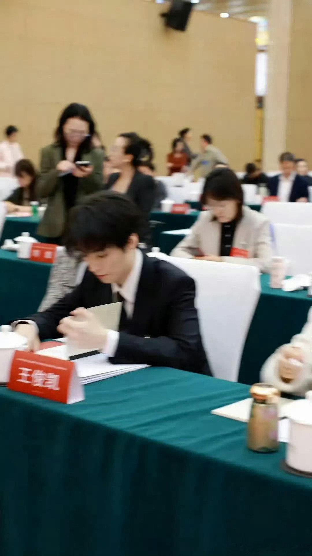 王俊凯以理事的身份出席中国文艺志愿者协会三届四次理事会议,认真工作的帅哥
