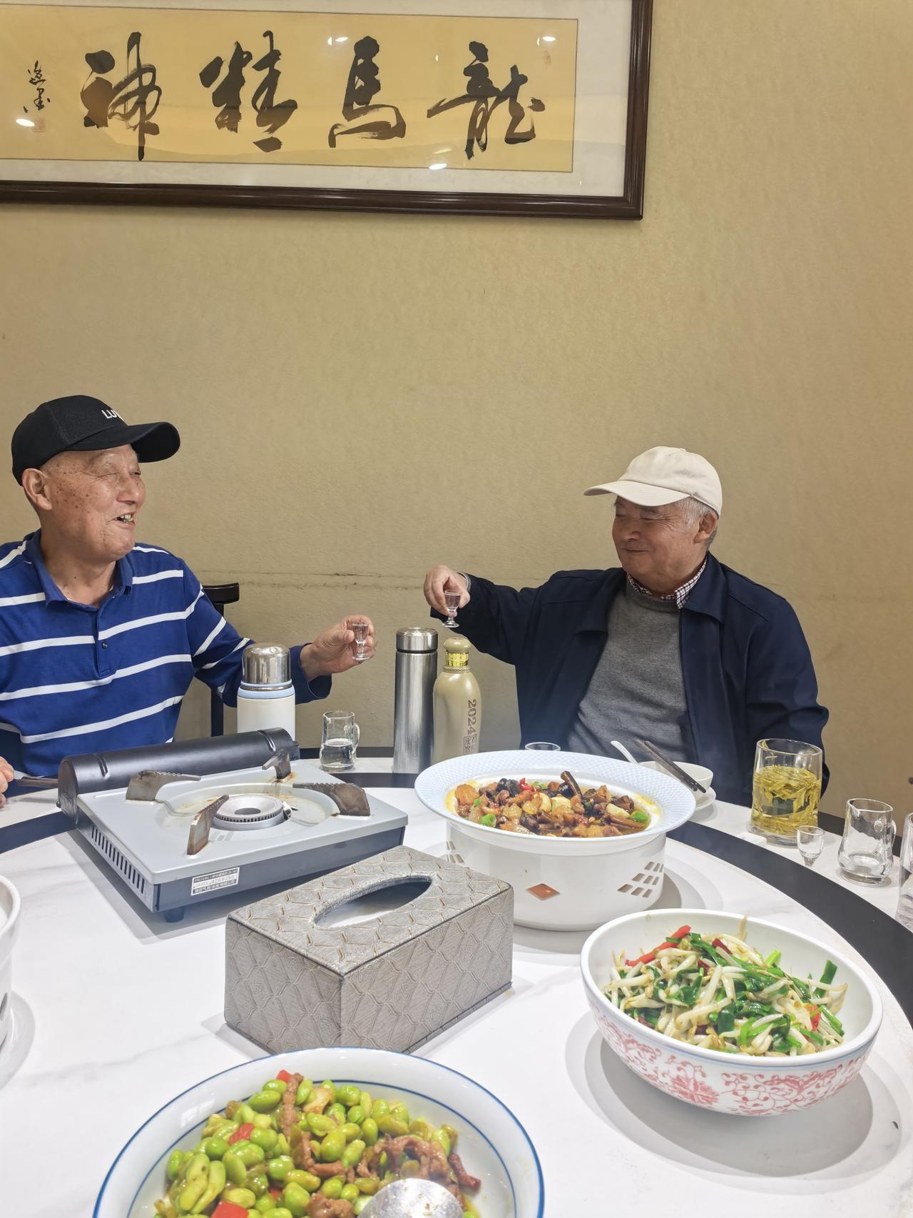 席间两位师傅照旧喝二两白酒,一辈子烟酒不忌,却始终守着分寸,酒不超二两,烟一天半包,从没做过体检,也没有非要戒酒的执念。他们聊着家国大事,从国际局势说到世间百态,那份发自肺腑的忧国忧民,赤诚又动人,聊得眼里有光,乐在其中。