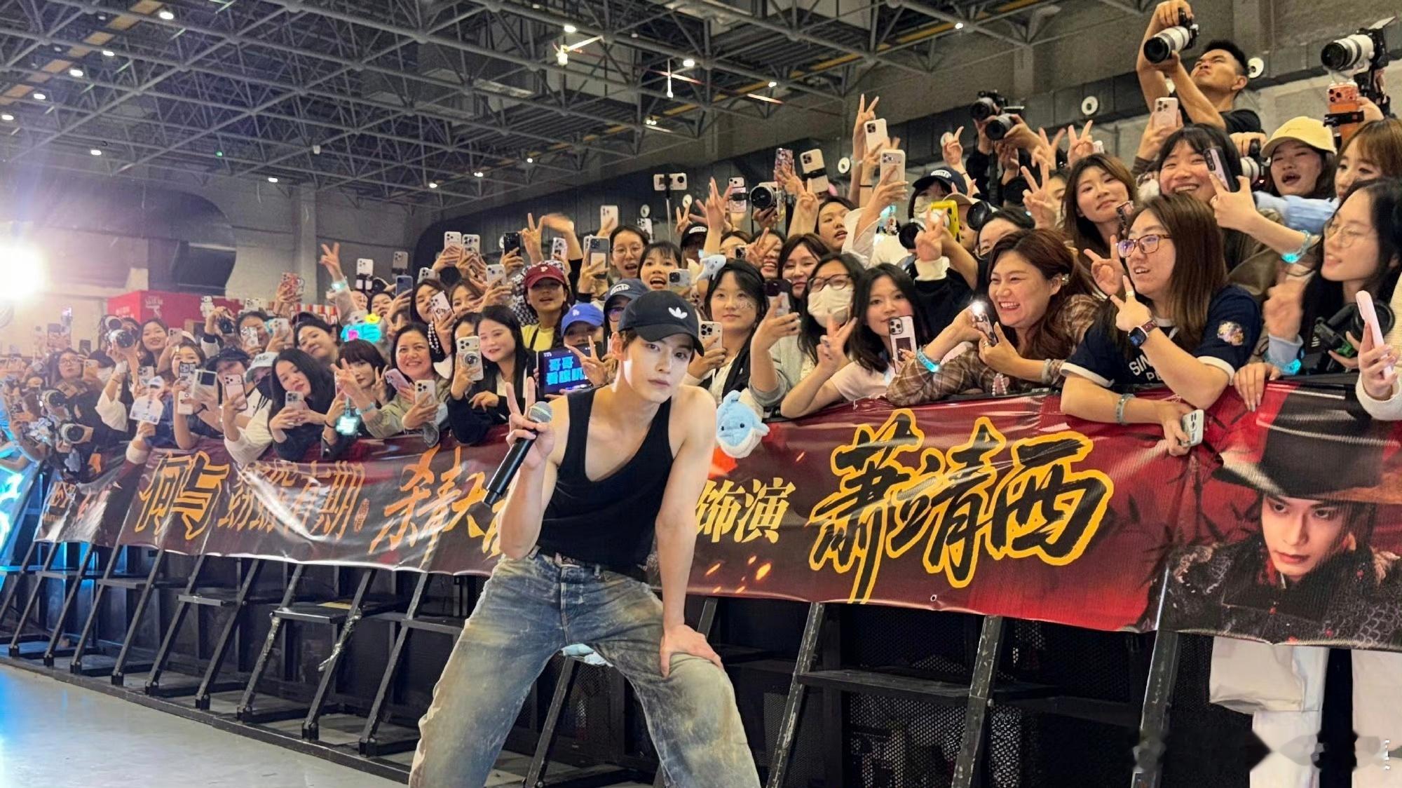 何与窈窈有期杀青现场,和粉丝大合照🈶,期待何与萧靖西囖