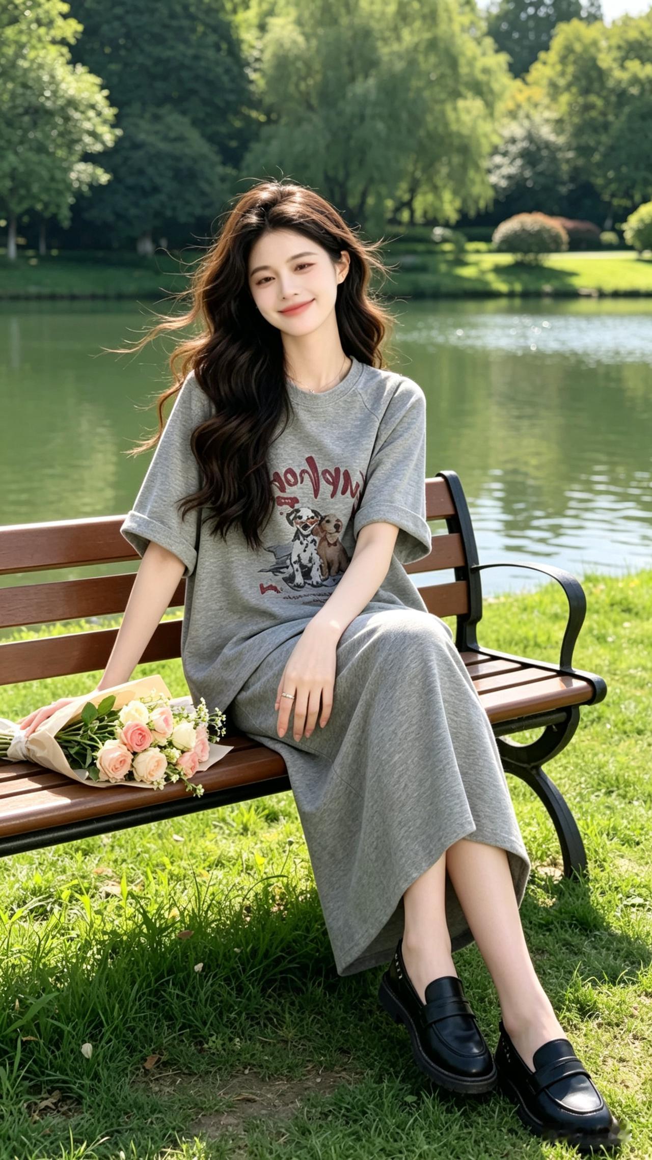 湖畔红裙美人,优雅坐于长椅,绿树环绕,美不胜收。什么样的女人最有吸引力细观美女