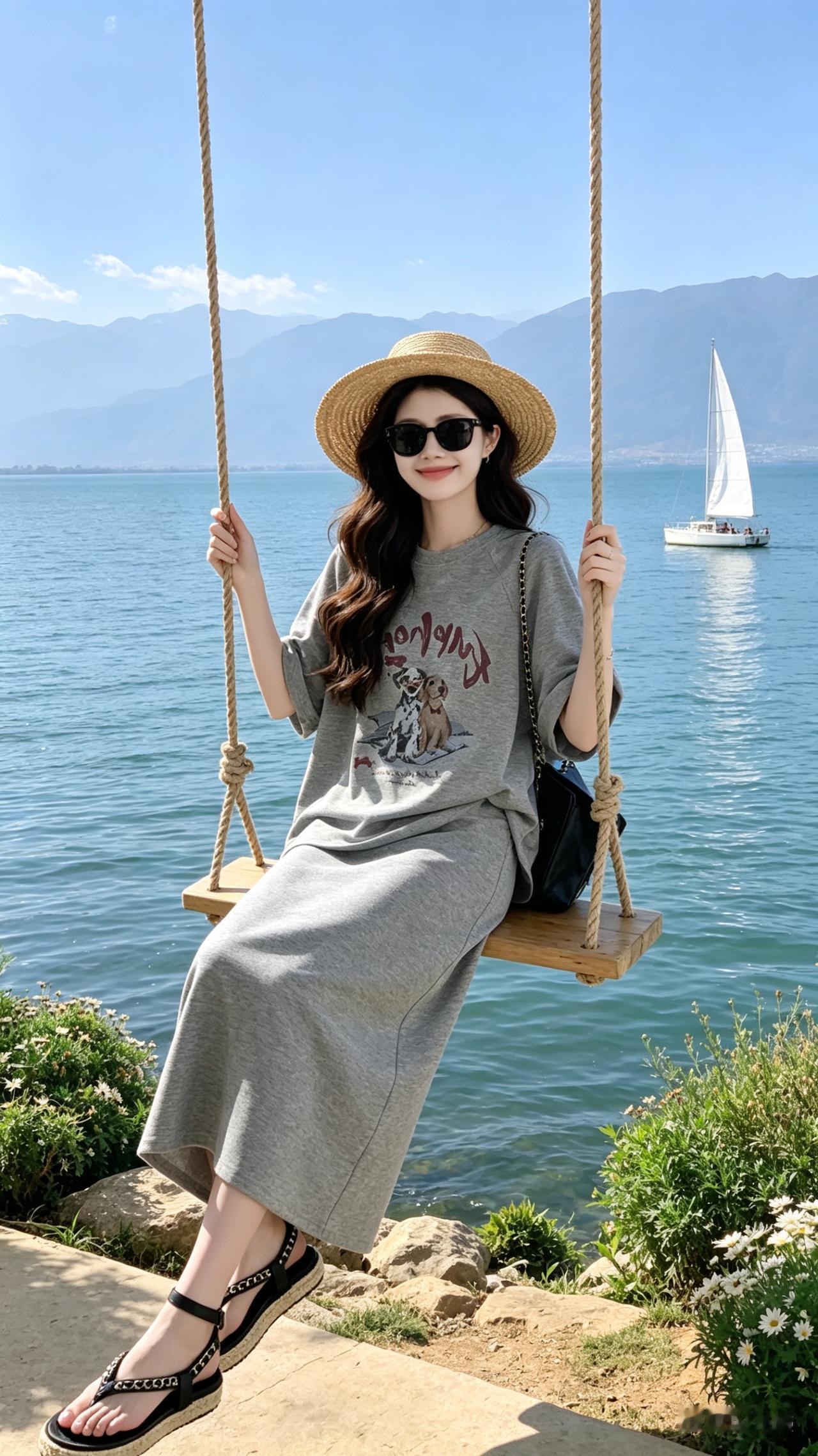 海边漫步,裙摆飞扬,享受海风拂面的惬意时光。