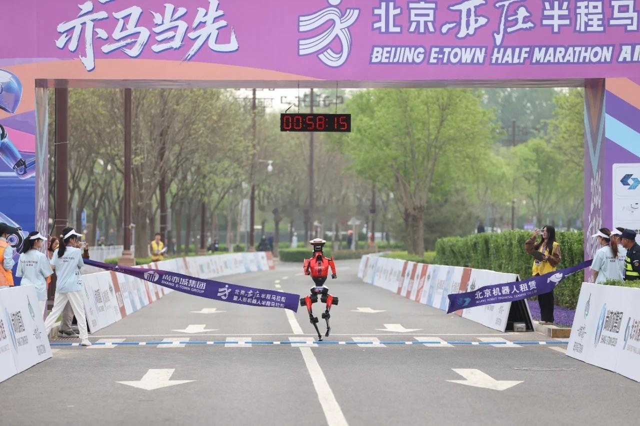 荣耀齐天大圣队自研人形机器人"闪电"以50分26秒净用时,拿下2026亦庄人形机器人半马冠军