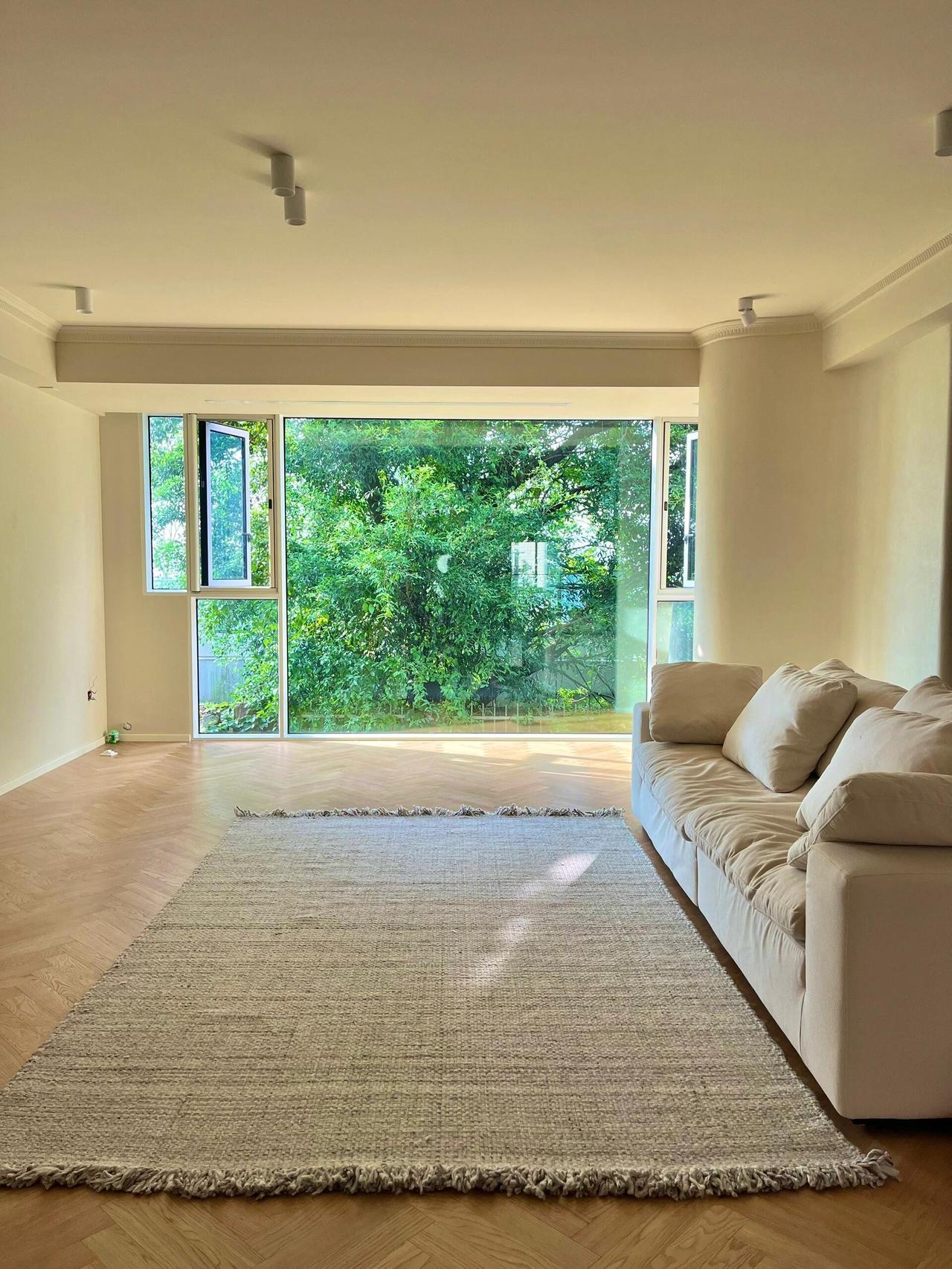 我跟老公,一个江西人一个辽宁人,在重庆上大学时认识,毕业就留了下来,工作都在老城区这边,看房时压根没想过去新区,跑了几个月,最后选了这套房——20年房龄的步梯老房子,2楼,套内138平。