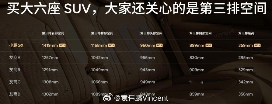 之前那些全尺寸车的三排,要不就是平平斜斜的一个空间俩箱子差不多了。要不就是坐在三排直接抬头看到后备箱门的玻璃了,要不就是局促的要死膝盖贴着2排靠垫,哪哪都不舒服,现在小鹏GX这个双倍的后备箱空间和三排的横纵距离,我有点种草了呢😆😆😆