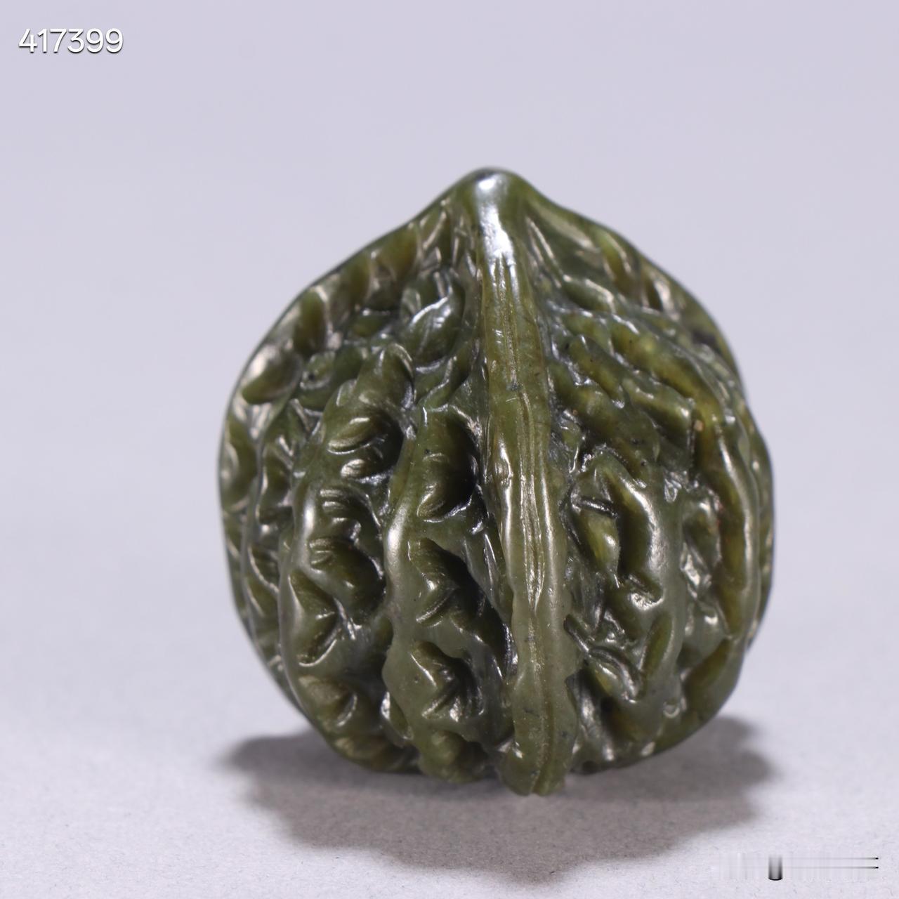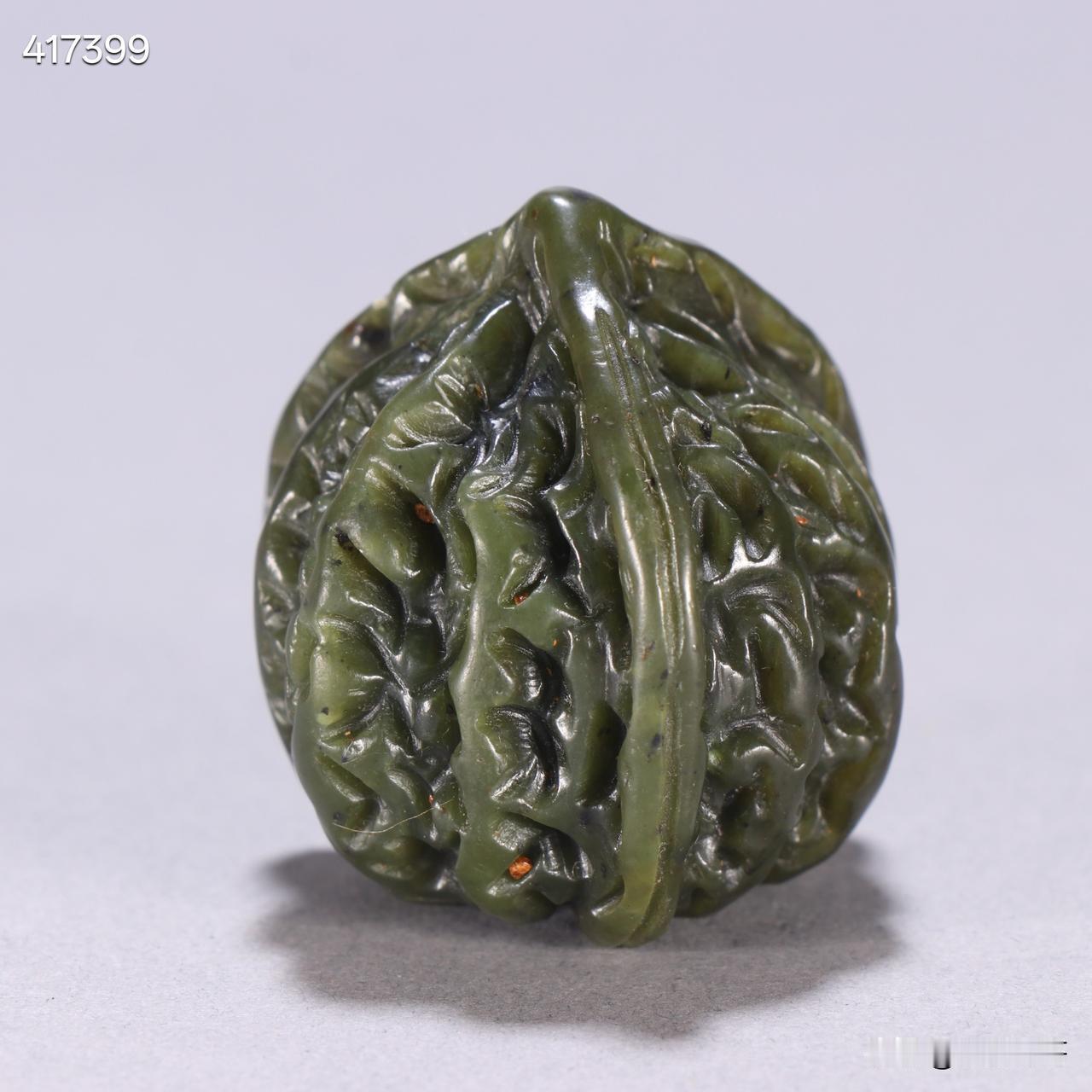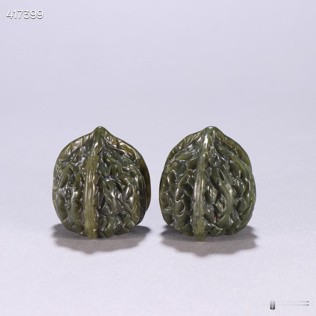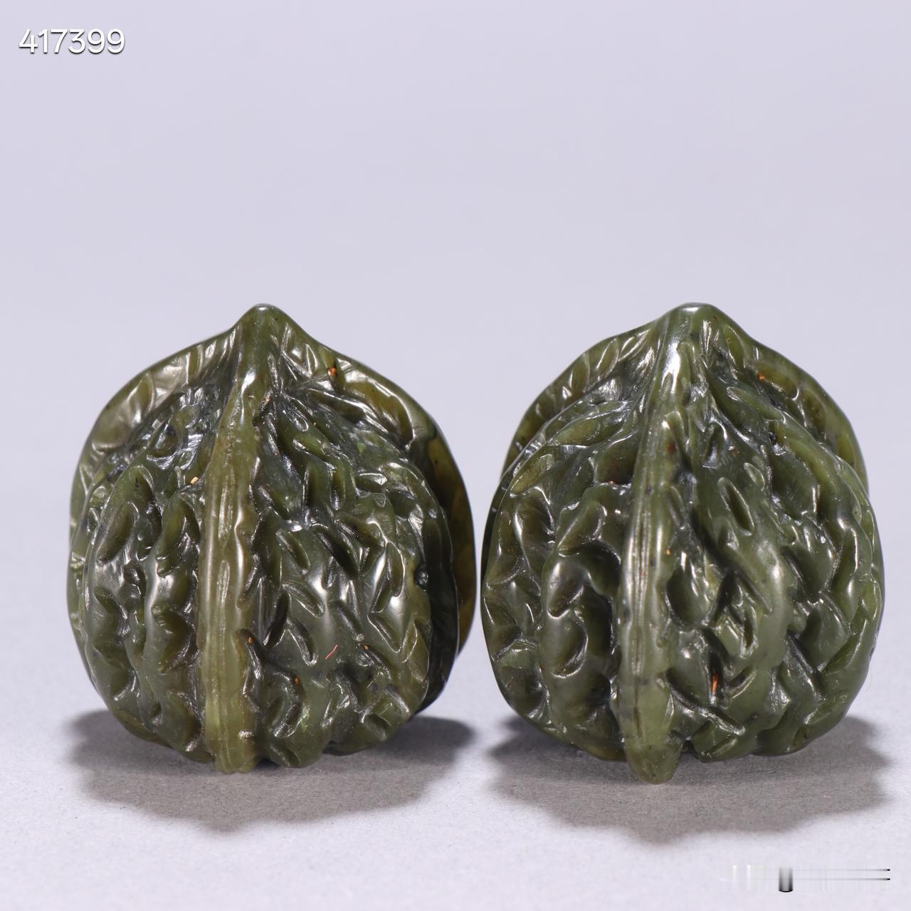 旧藏 碧玉核桃一对 规格∶高4.1cm宽3.7cm