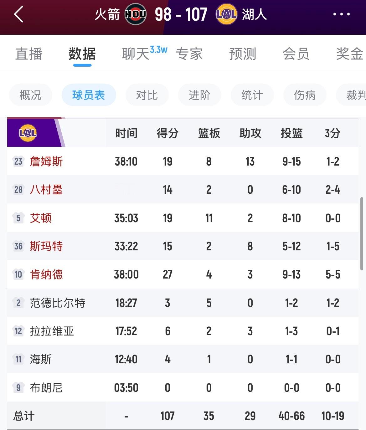 恭喜湖人拿下开门红,火箭第一场纯纯被吊打,进攻端本来就差,防守也不咋地,湖人多点开花,詹姆斯、肯纳德、艾顿、斯玛特、八村首发都发挥出色,肯纳德更是拿到全场最高的27分,三分百发百中,老詹都开始各种秀操作了,左手勾手也是手到擒来,东契奇在后面的比赛中也可能复出,一切都利好湖人。
