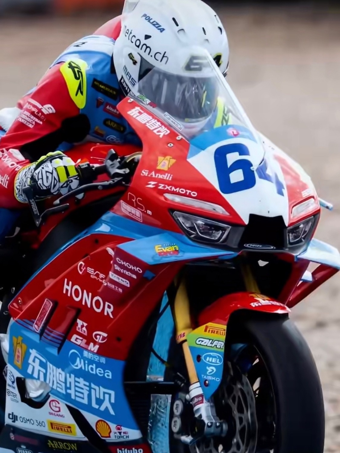 张雪机车车身新增多个中国品牌标识好大的东鹏特饮