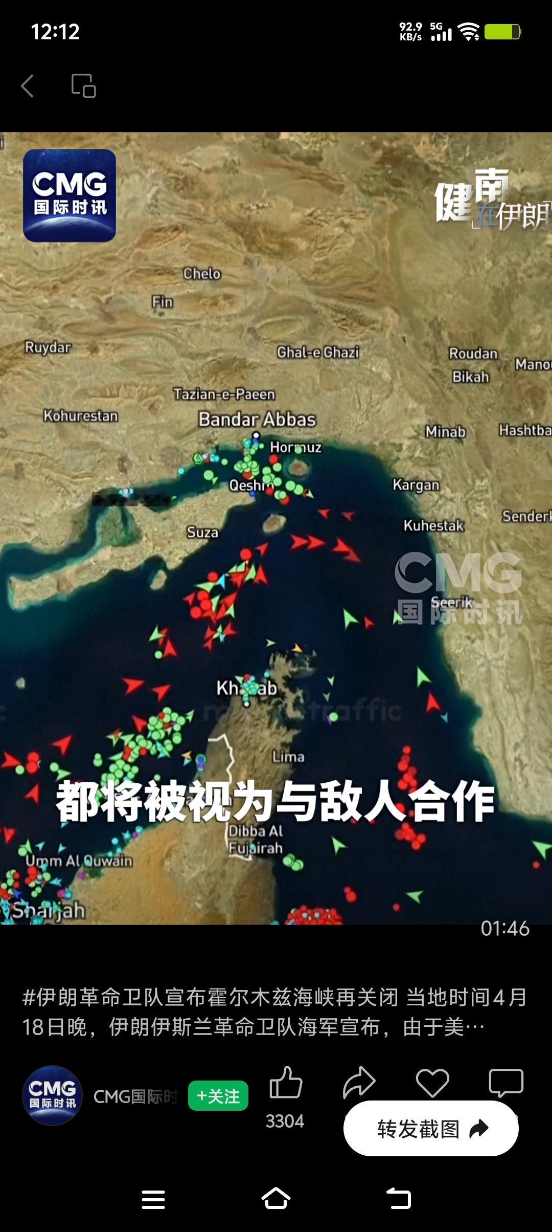 伊朗这么做也是为了争取自己的权益,只有美国解除封锁,这海峡才可能重新开放。希望美国能有点诚意,别把局势搞得更紧张了。声明:(借用网络视频图)