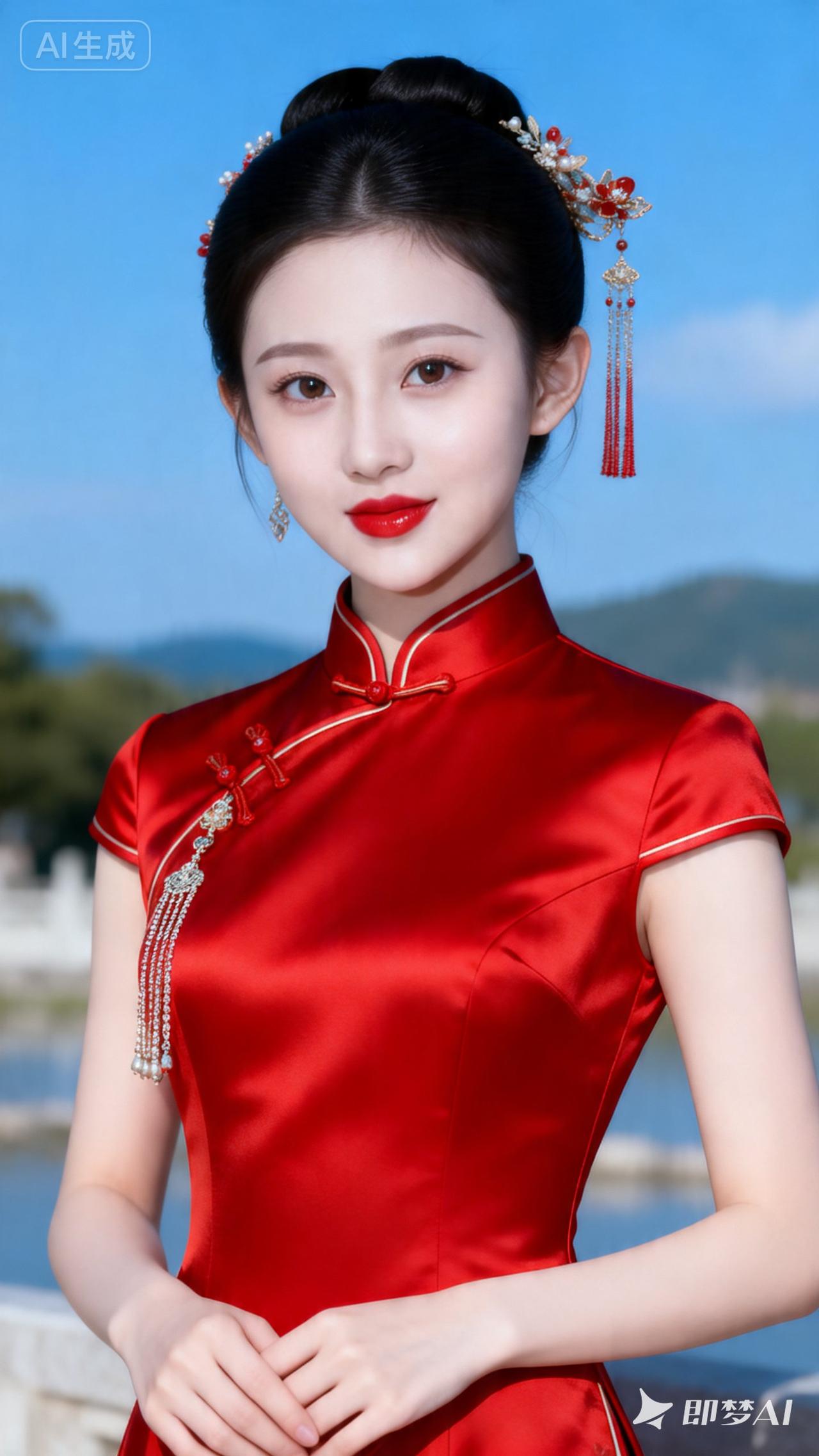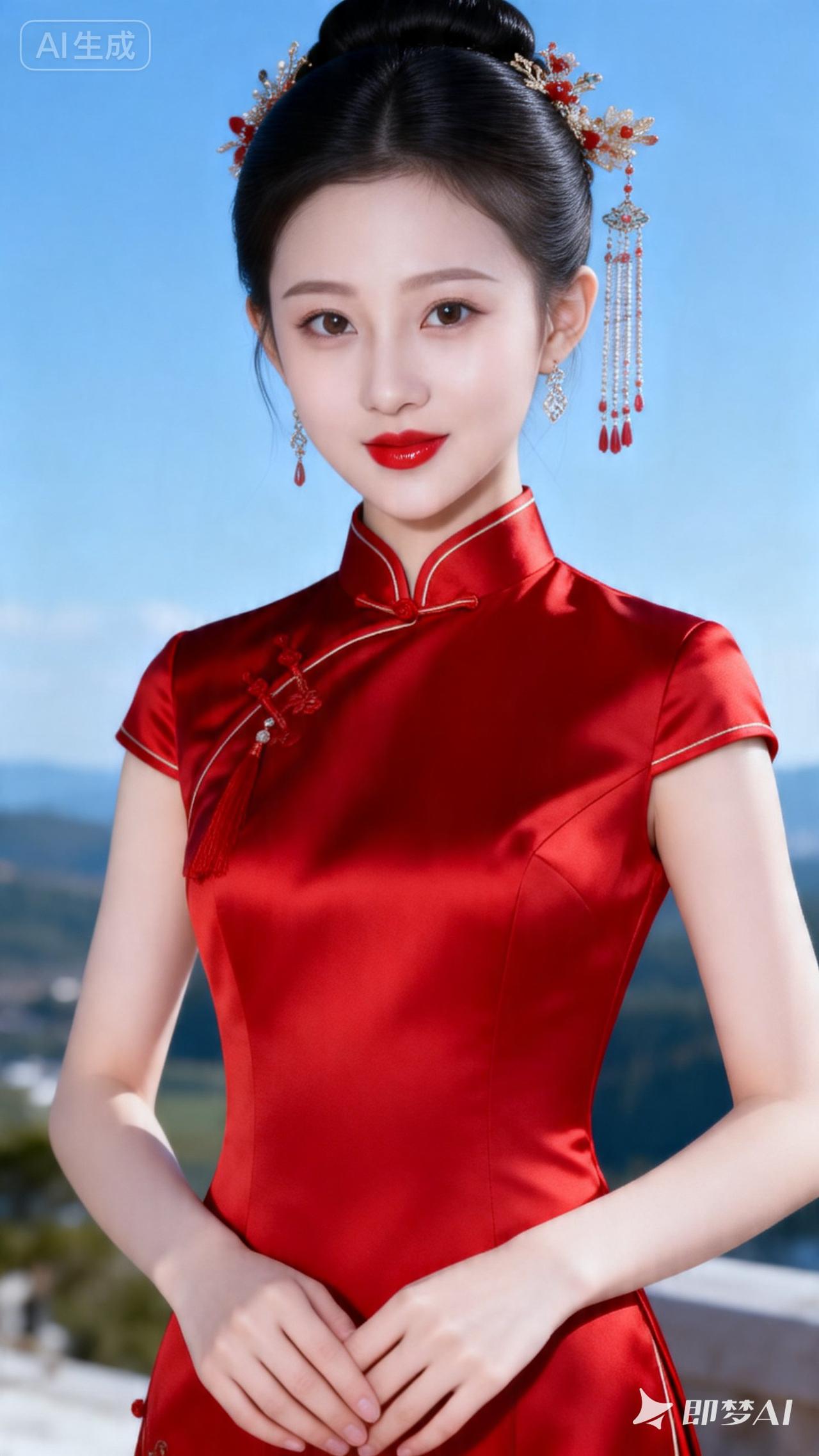 惊艳的东方美人,红衣华服,古典优雅!
