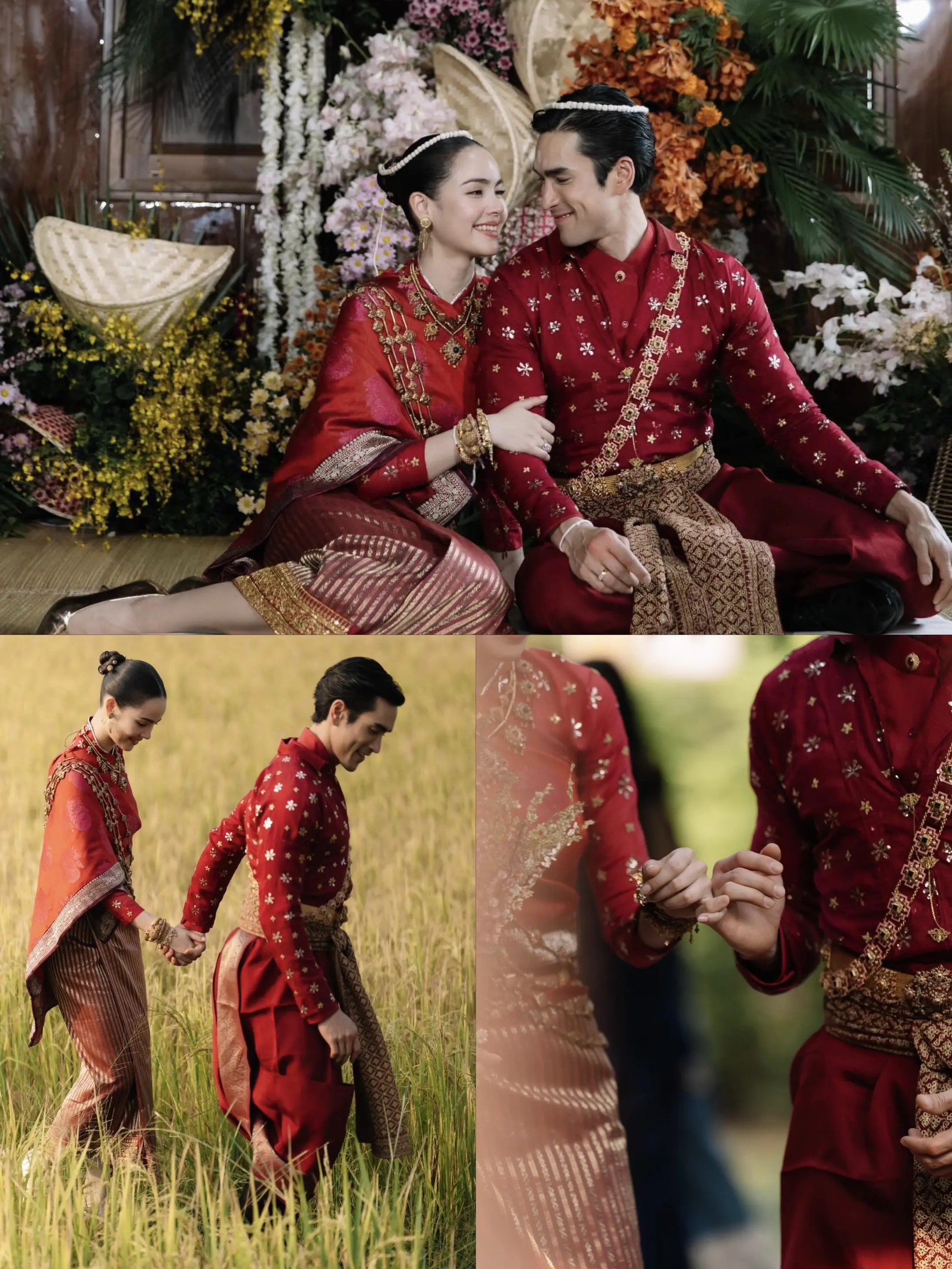 泰国国民女演员Yaya今日婚礼💒 今日,33岁的Yaya与34的Nadech与在新郎家乡孔敬举办首场婚礼。现场布置融入稻穗等自然元素,配着红金配色的传统礼服,现场轻松生动又唯美端庄。