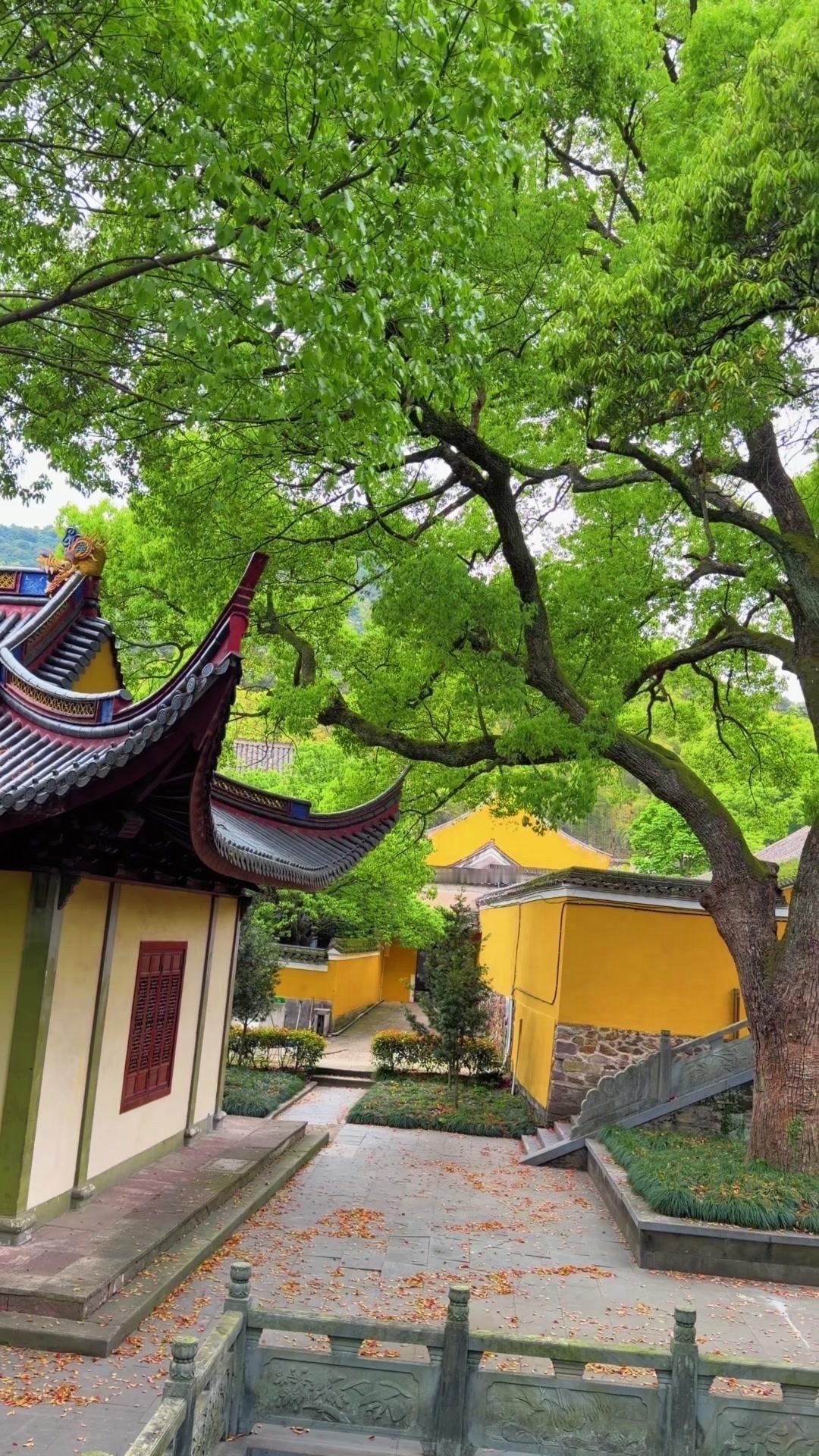 🌿阿育王寺的春天太治愈了!红墙黛瓦间,新绿悄悄爬上枝头,连风都变得温柔。走在石板路上,听着鸟鸣和远处隐约的钟声,所有喧嚣都被这抹绿意抚平,整个人都静下来了。