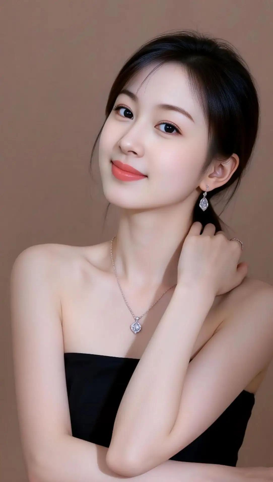 优雅黑裙搭配闪亮项链,甜美笑容,气质满分!💖✨🌴