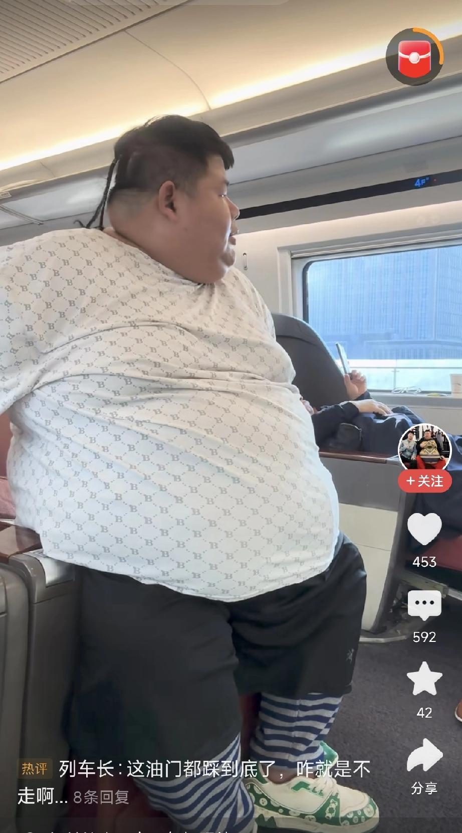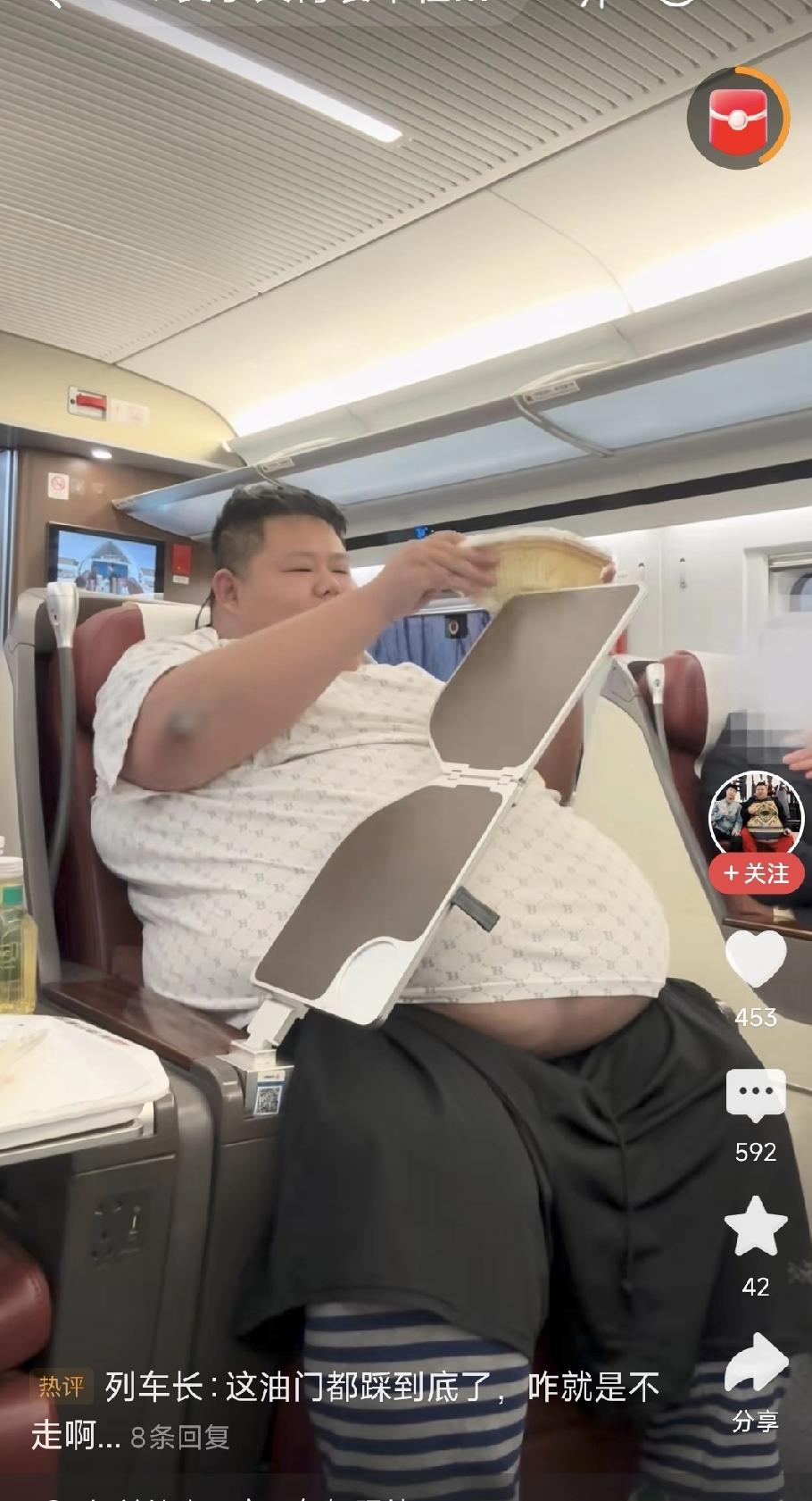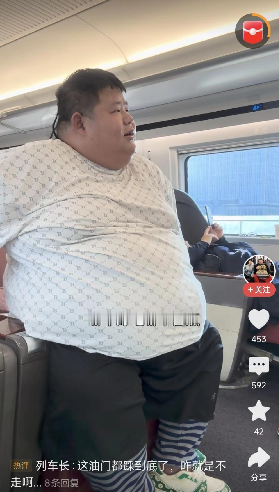 肥胖的人,好难啊! 刚刚看到一个视频,内容是网红“良子大胃袋”坐高铁的情况,好