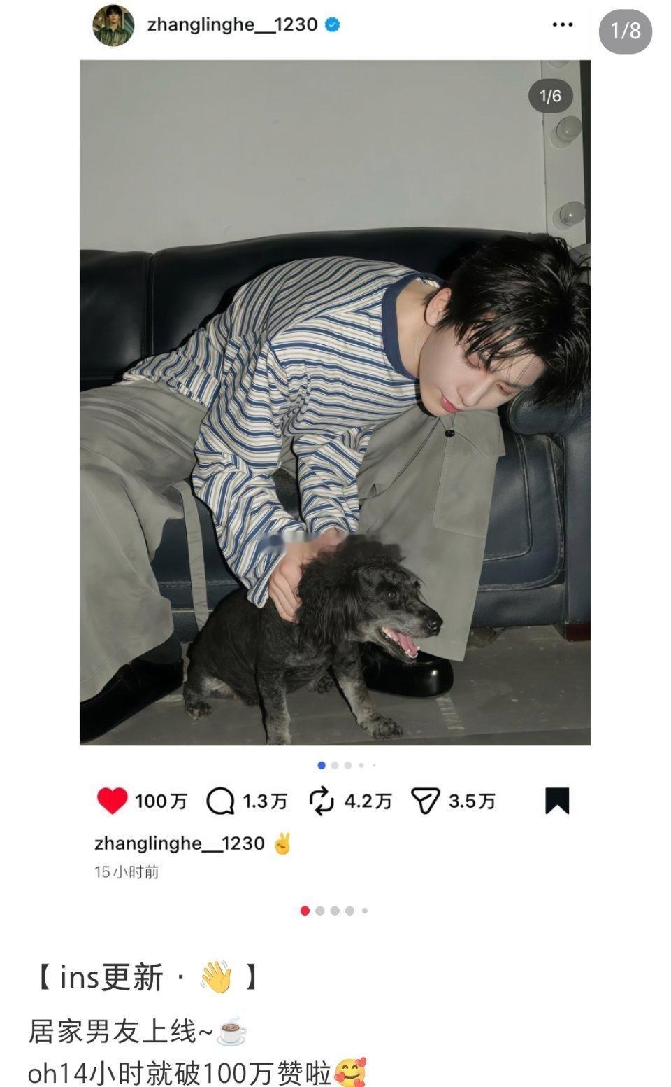 张凌赫ins十四个小时破百万点赞,达成内娱男明星最快破百万点赞记录。