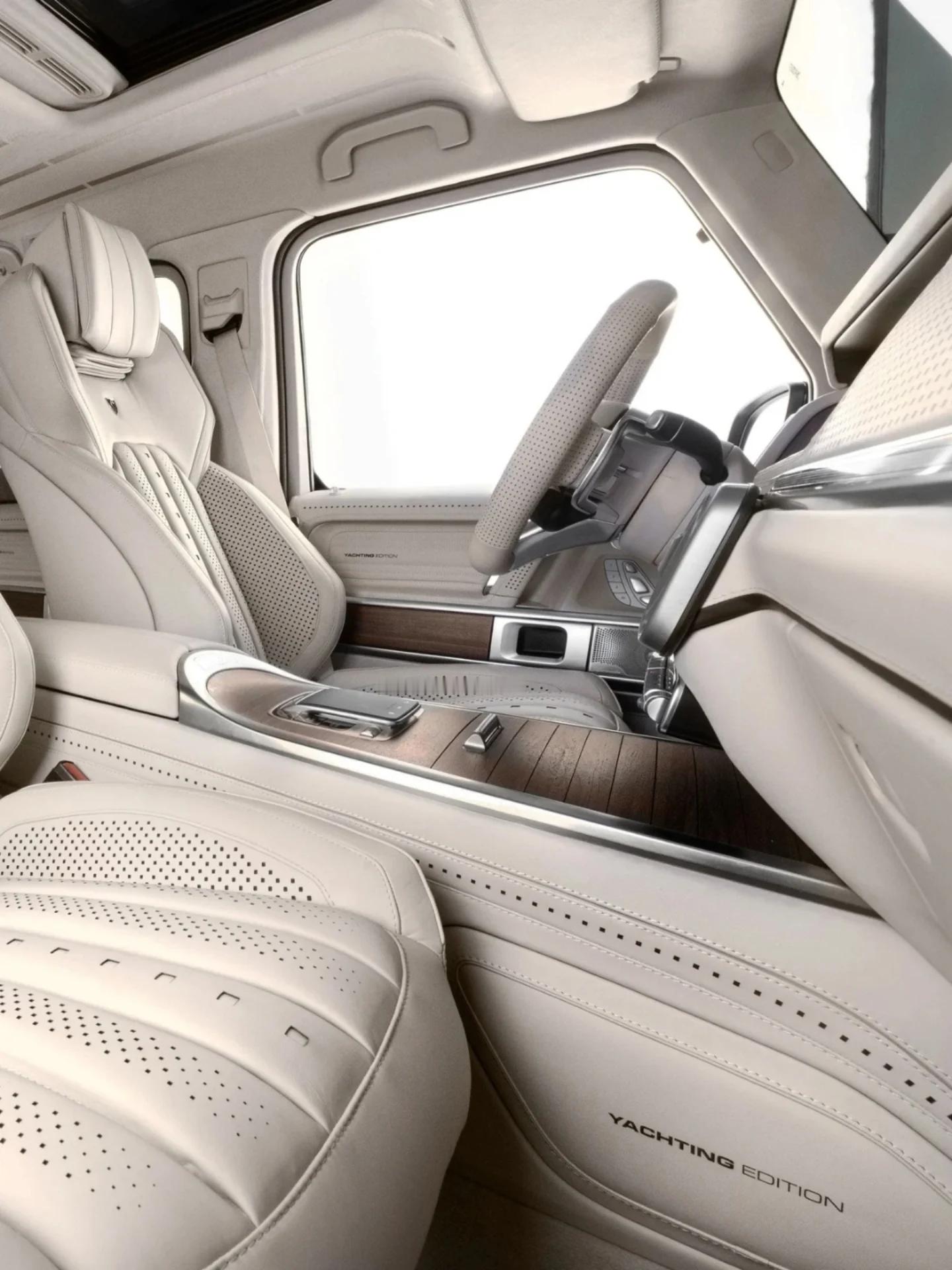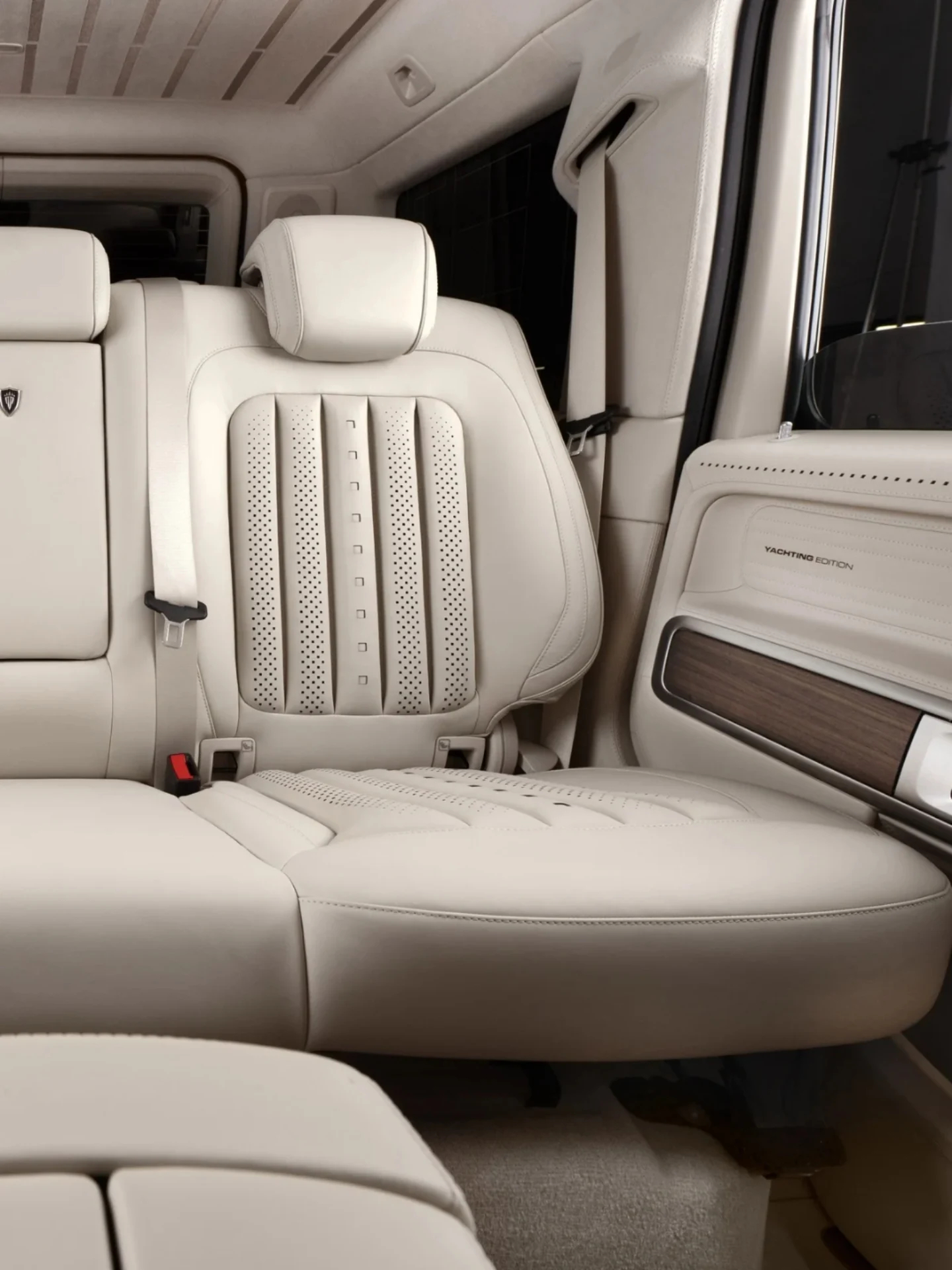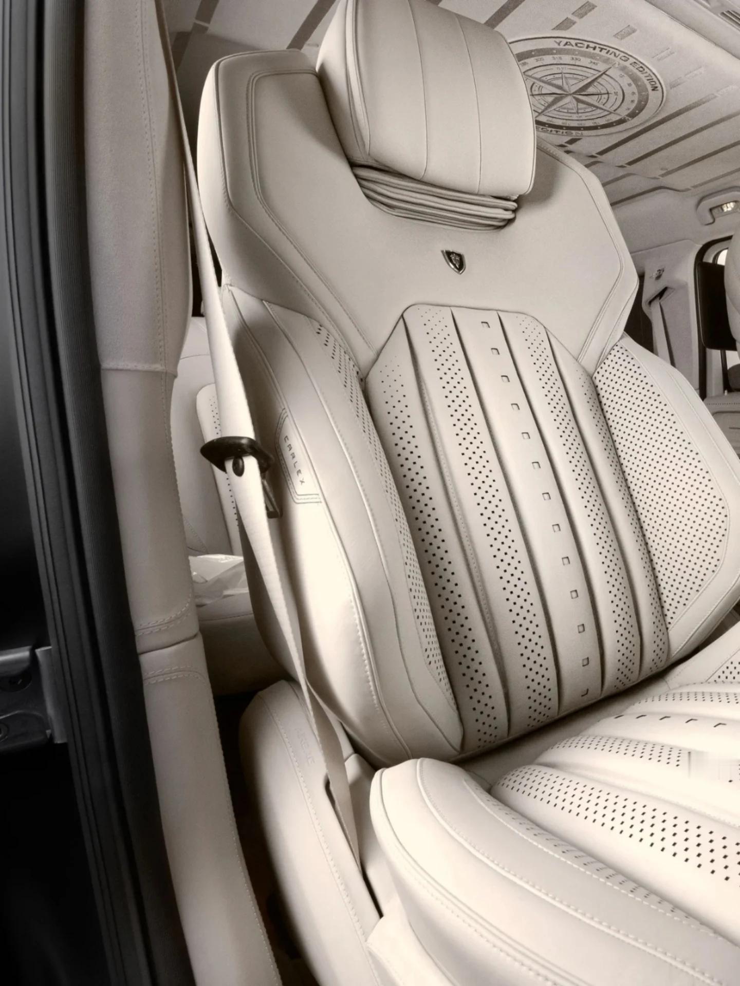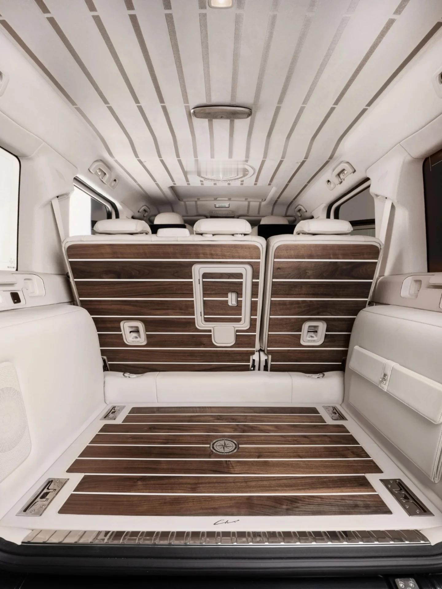 罗盘玫瑰图案悄然引入一份宁静的导向感。柚木灵感木饰,唤起了游艇甲板般的秩序与优雅。甚至行李舱内的系缆桩也兼具功能,而非装饰——这一细节源自真实的游艇逻辑。