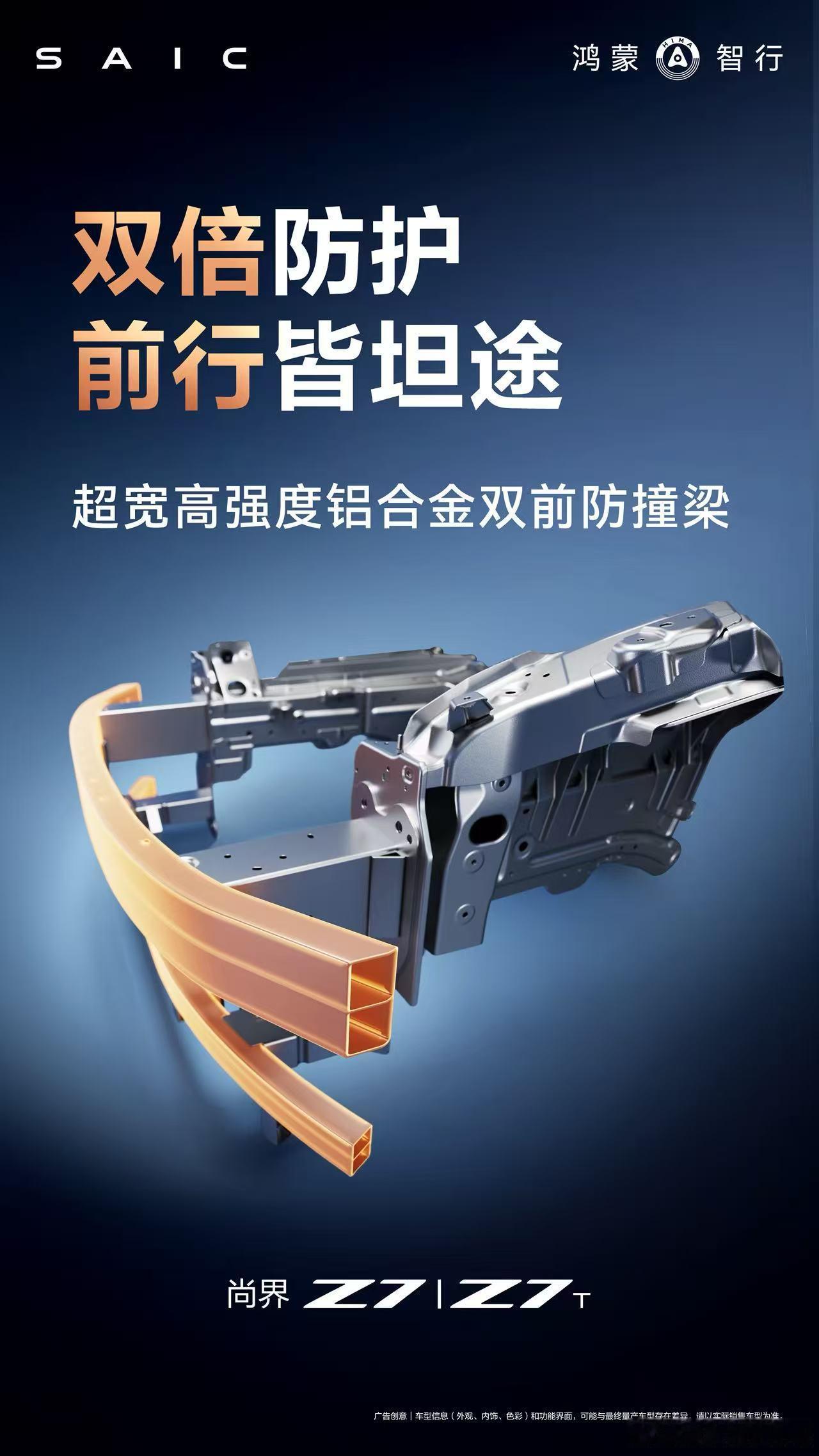 超宽高强度铝合金双前防撞梁+高强度铝合金后防撞梁,高效吸能缓冲,能够更好地保护车身主体结构和电池安全。