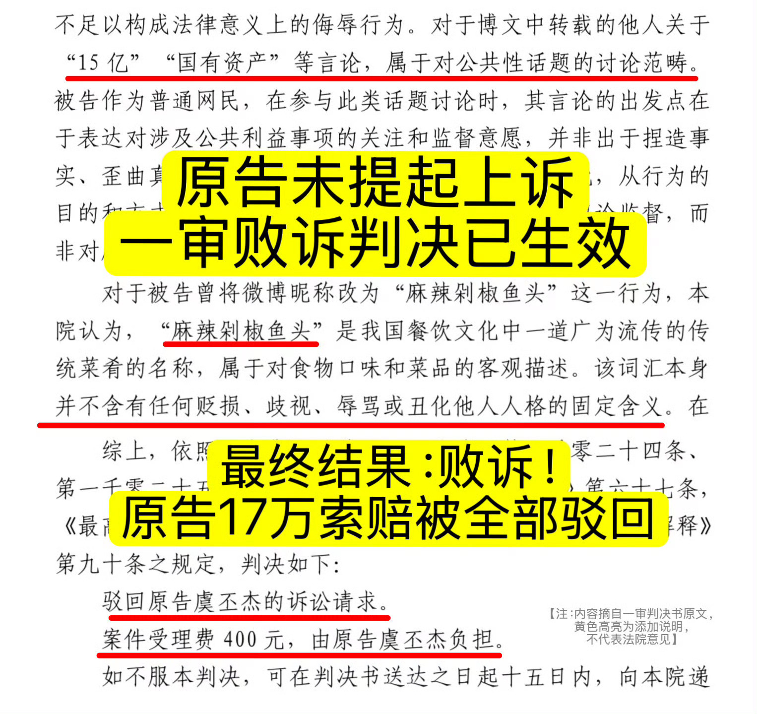 表面上是虞书欣父亲17万诉讼败诉,实际上是虞书欣败诉。注意看判决书的内容,法院定