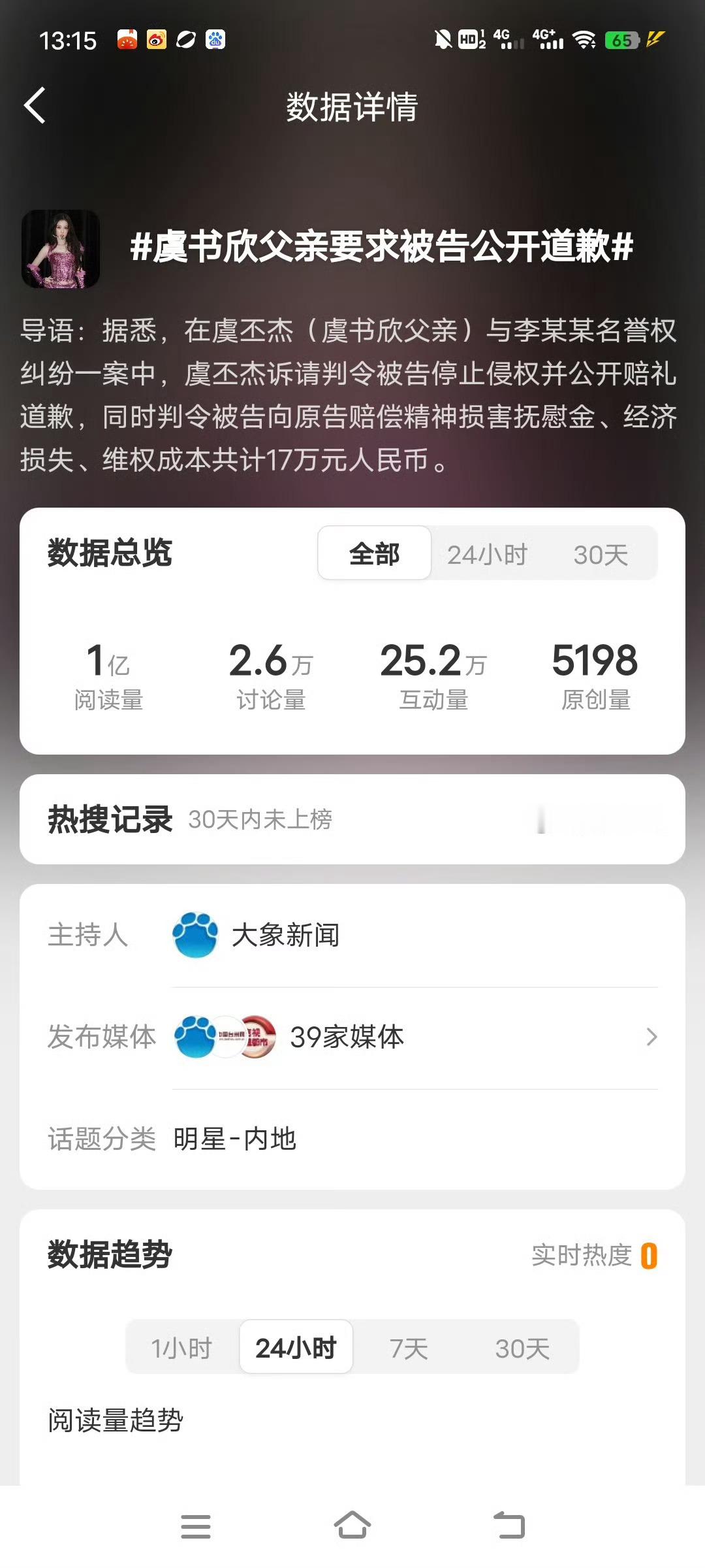 表面上是虞书欣父亲17万诉讼败诉,实际上是虞书欣败诉。注意看判决书的内容,法院定性其根源是虞书欣本人所引发的公共事件。这个案子起诉阶段,就上了好几次热搜,现在败诉了,虞书欣及虞书欣父亲能给被网暴的未成年人道歉吗? 虞书欣父亲索赔17w败诉