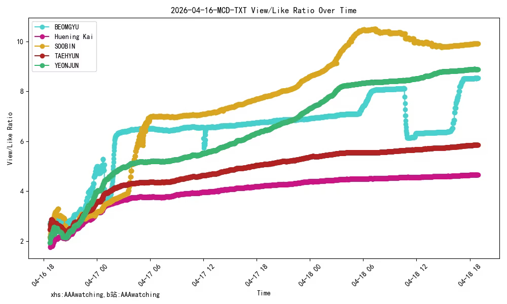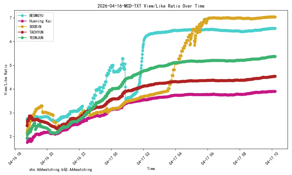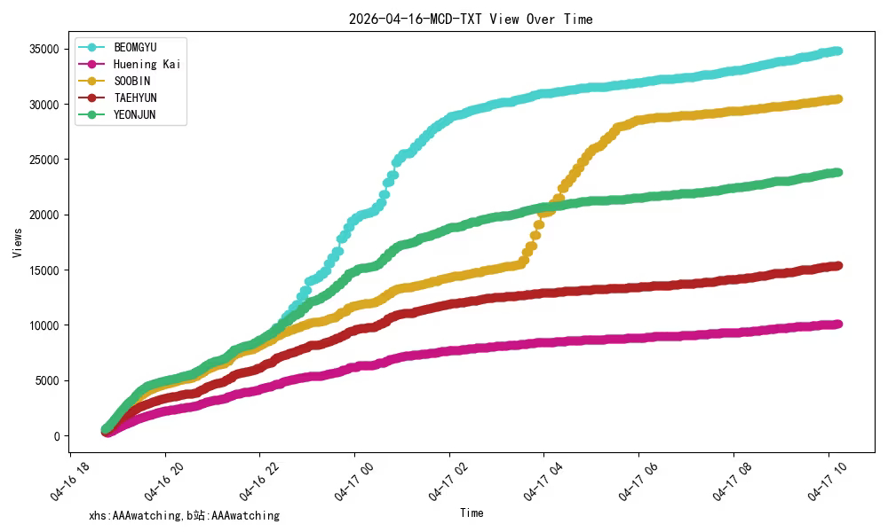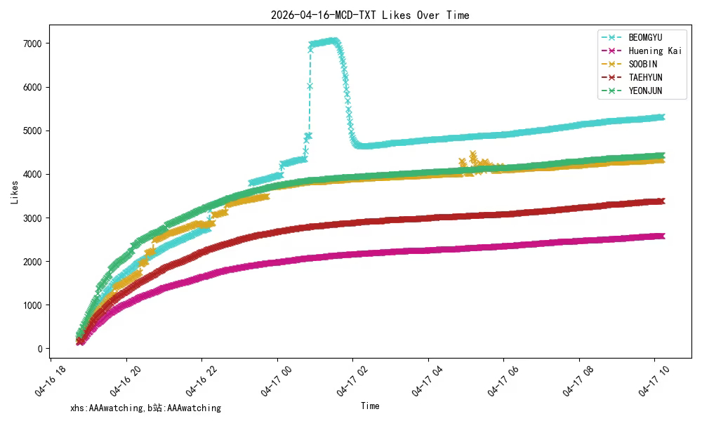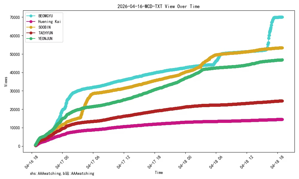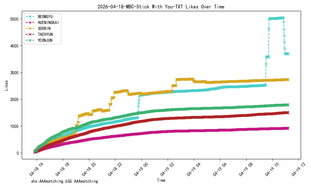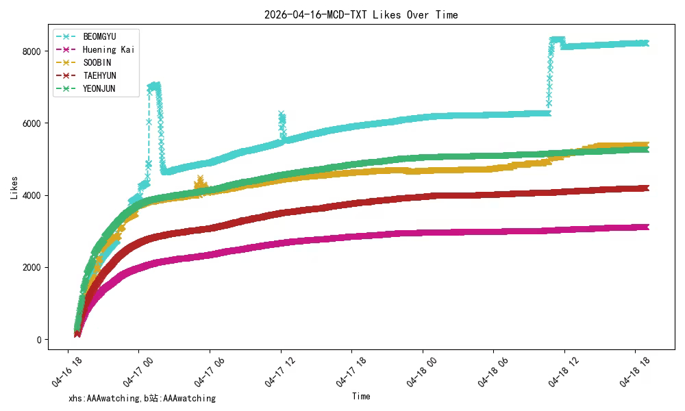 惹小生一笑,韩国男团TXT本次回归直拍曲线有谁敢看~先有崔秀彬阶梯上升后有崔杋圭暴增3w,一阶更比一阶强