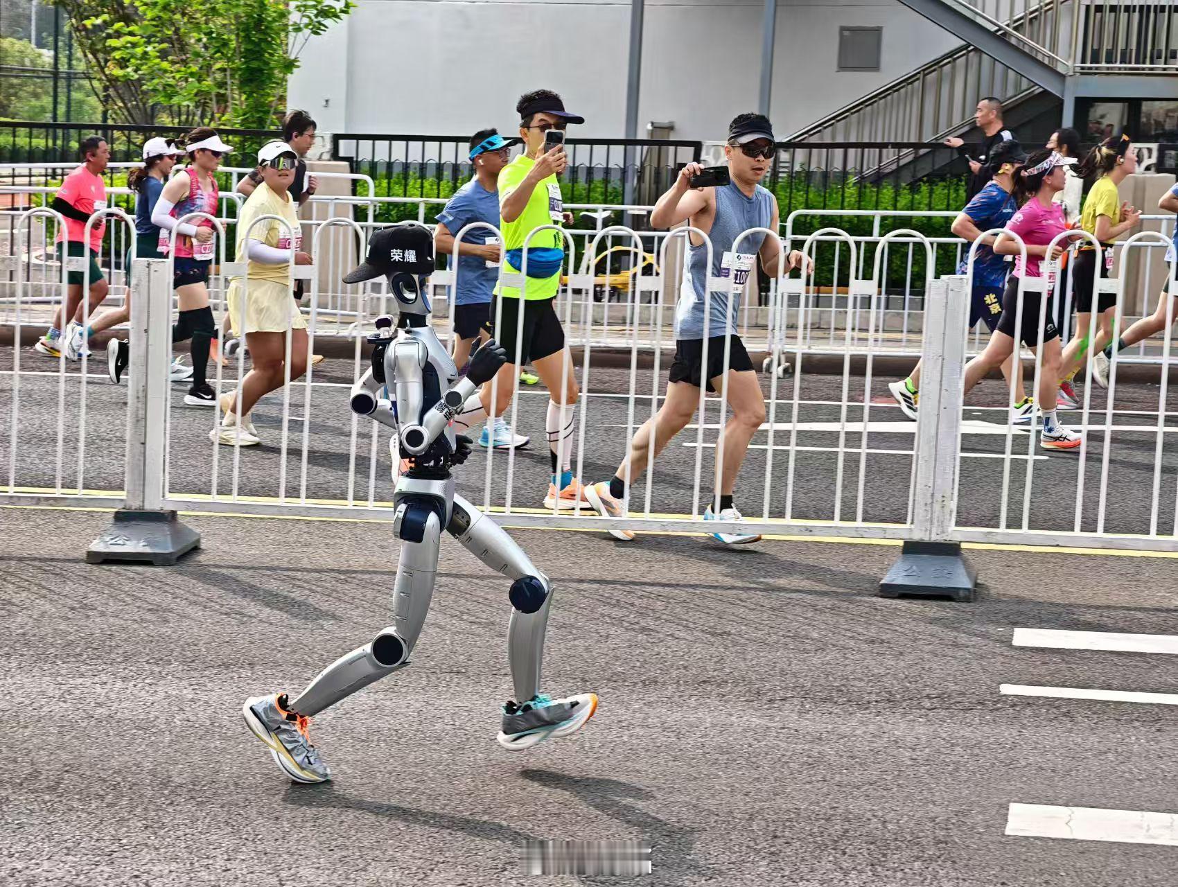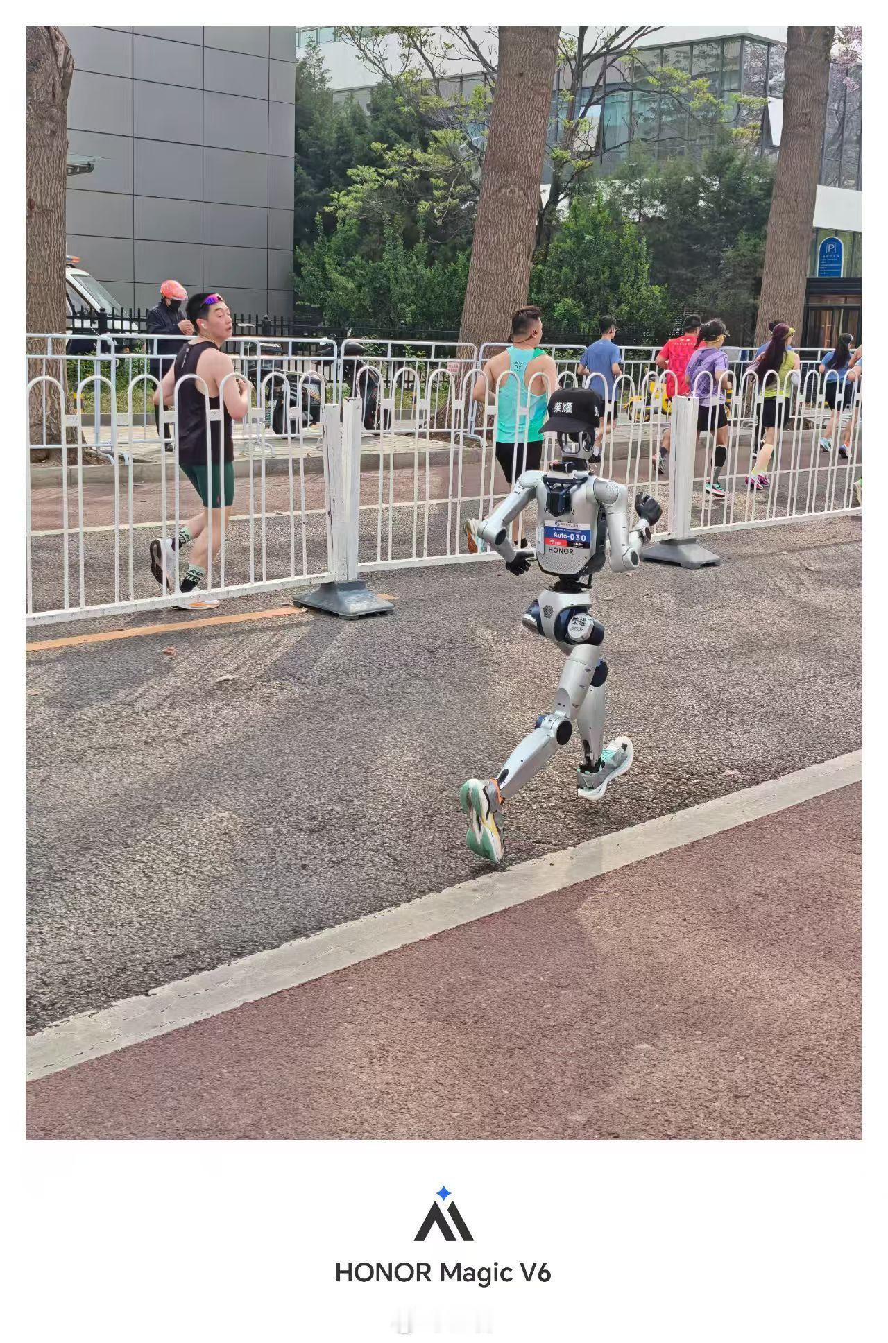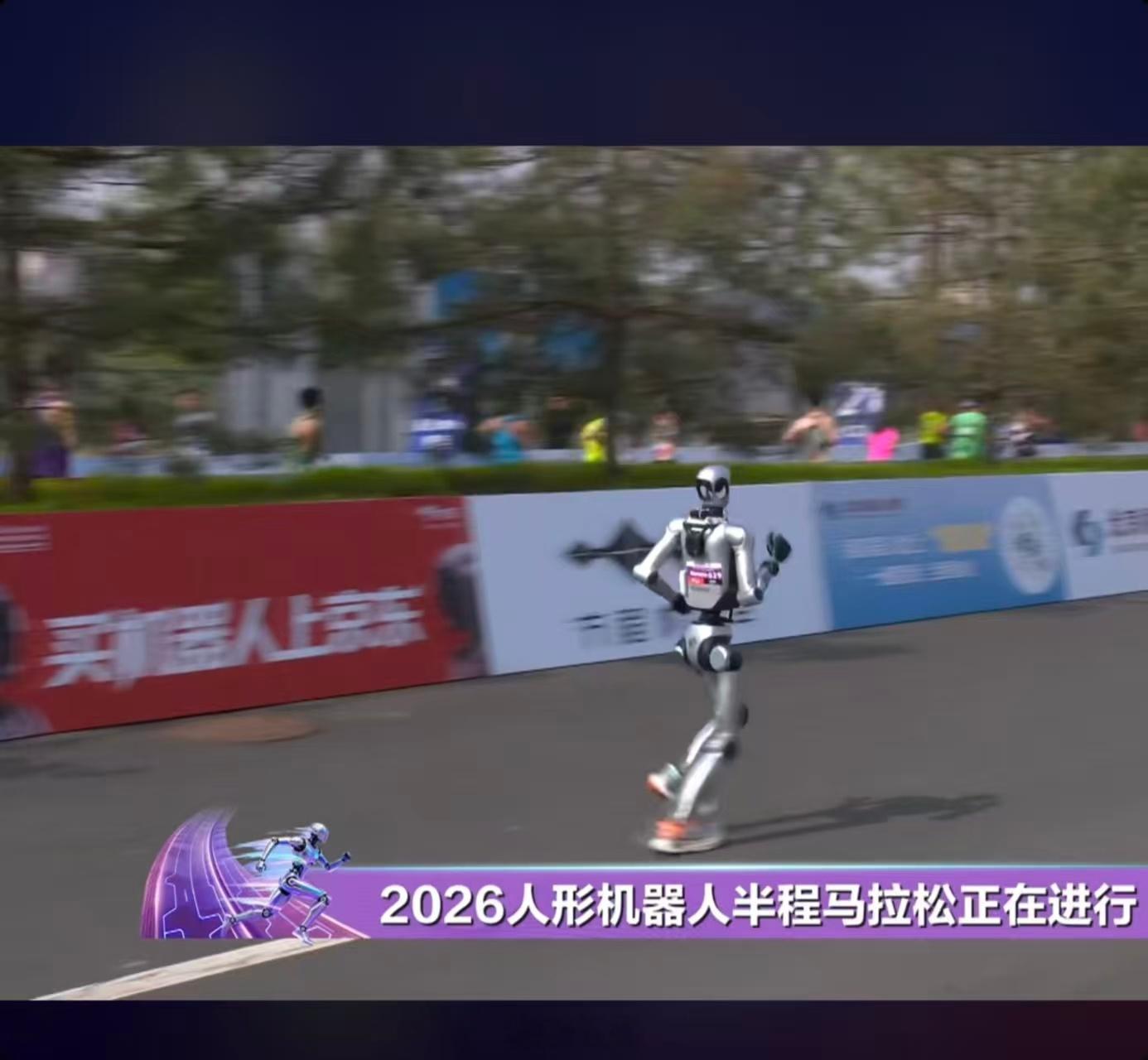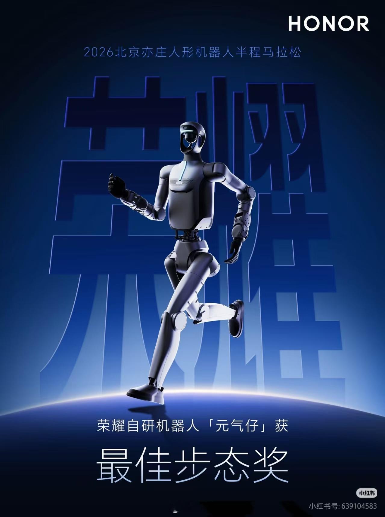 2026北京亦庄人形机器人半马赛场,荣耀自研机器人元气仔全程佩戴荣耀手表6 Plus完赛,不愧是网友评选出来的最佳步态奖,太优雅了!