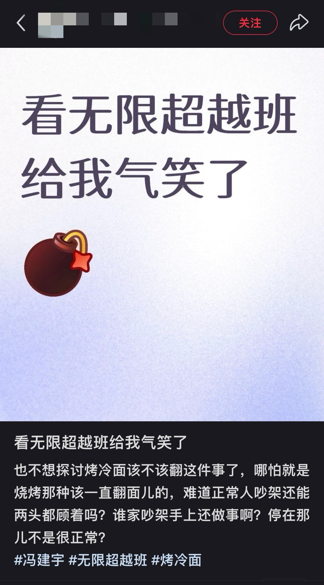 冯建宇烤冷面不翻面 冯建宇因烤冷面不翻面被淘汰《无限超越班》主打演员成长,可冯建宇的淘汰理由却和演技毫无关系吧!“烤冷面不翻面”这种小事,竟成了核心评判依据,节目组的逻辑实在荒谬,这不是故意搞事情吗?请节目组正面回应!