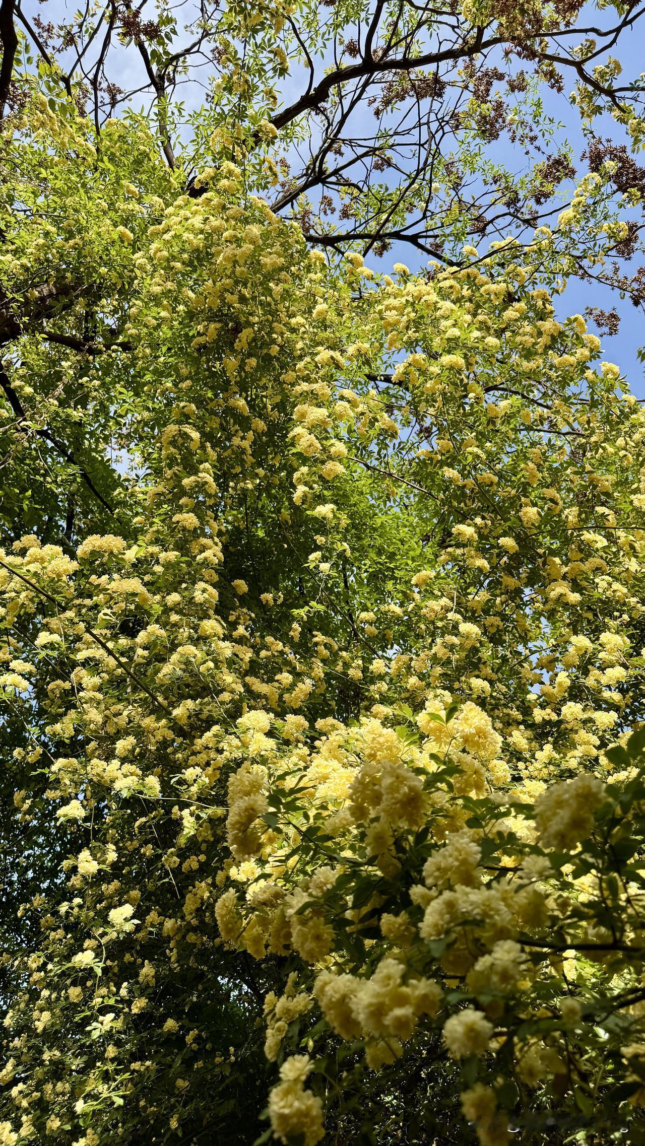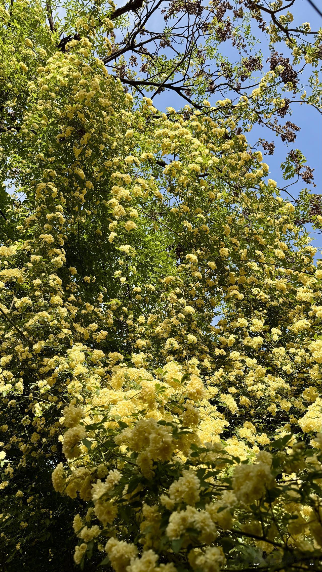 第一次看到这么美的花真的惊艳到我了,满树满墙都是黄黄的花朵,问旁边的人才知道这是木香花,别名七里乡,是蔷薇科蔷薇属的一种攀援小灌木,难怪远远的就闻到了香味,木香花是著名的芳香类藤蔓观赏植物,有“藤本花魁”之称。中国宋代诗人晃咏之在《木香花》中,云“从教春事年年晚,要使诗人日日狂”,赞叹木香花的动人。随手一拍美丽的花朵木香花香 黄花木香花