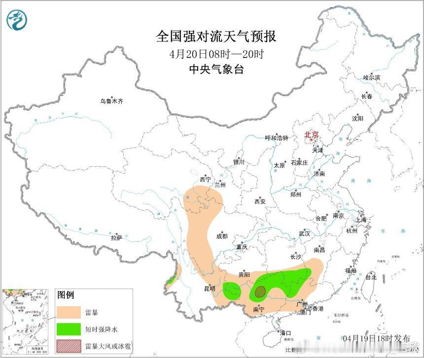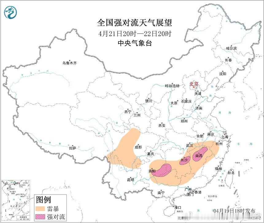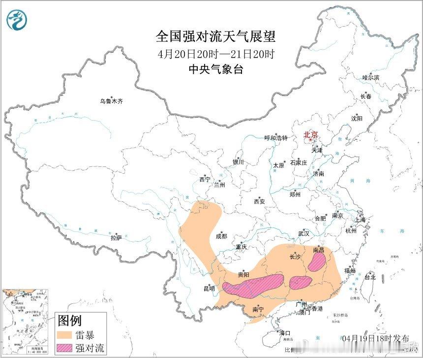 之后南方低涡切变线东移,强对流潜势区向东转移。预计4月20日20时至21日20时,湖南南部、江西中南部、贵州南部、广西北部、广东西北部等地的部分地区将有强对流天气。预计4月21日20时至22日20时,湖南东部和西南部、江西中北部、贵州东南部、广西北部等地的部分地区将有强对流天气。