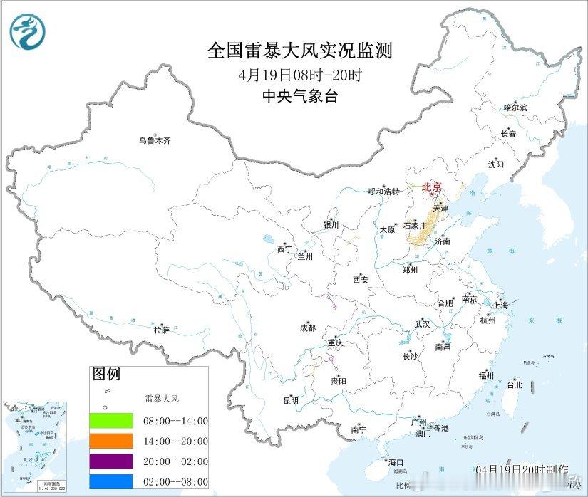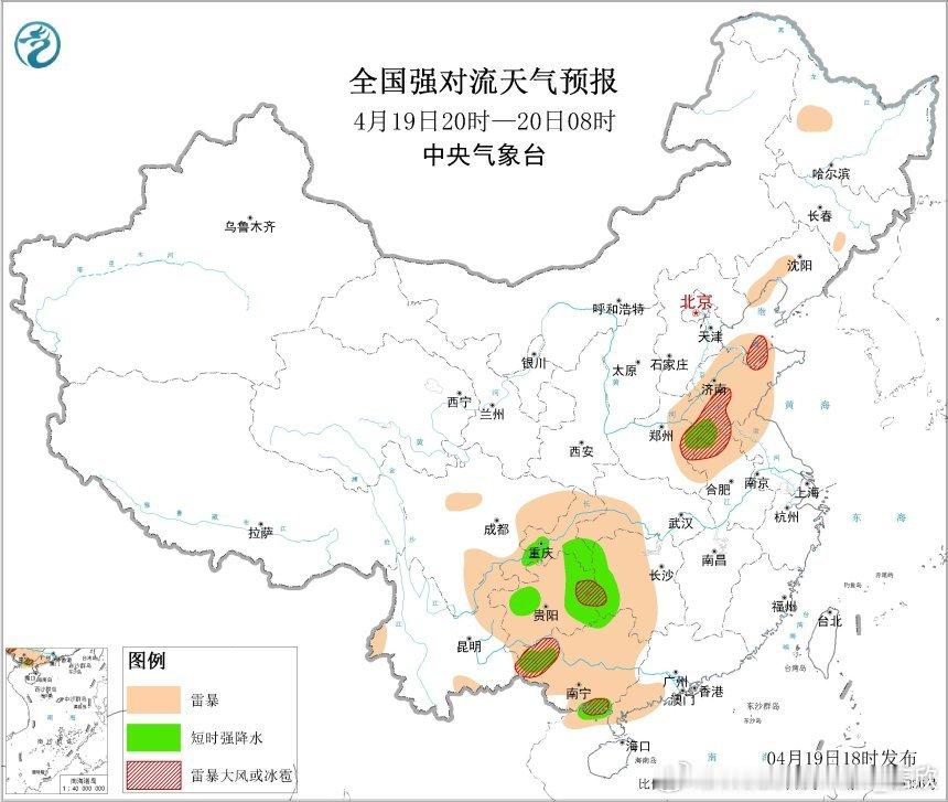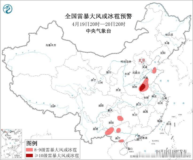 中央气象台4月19日18时继续发布强对流天气蓝色预警:预计4月19日20时至20日20时,黄淮、西南地区东部、华南西部等地的部分地区将有8级以上雷暴大风或冰雹天气,其中,山东西南部、河南东部、安徽北部等地的部分地区将有10级以上雷暴大风,最大风力可达11级以上;