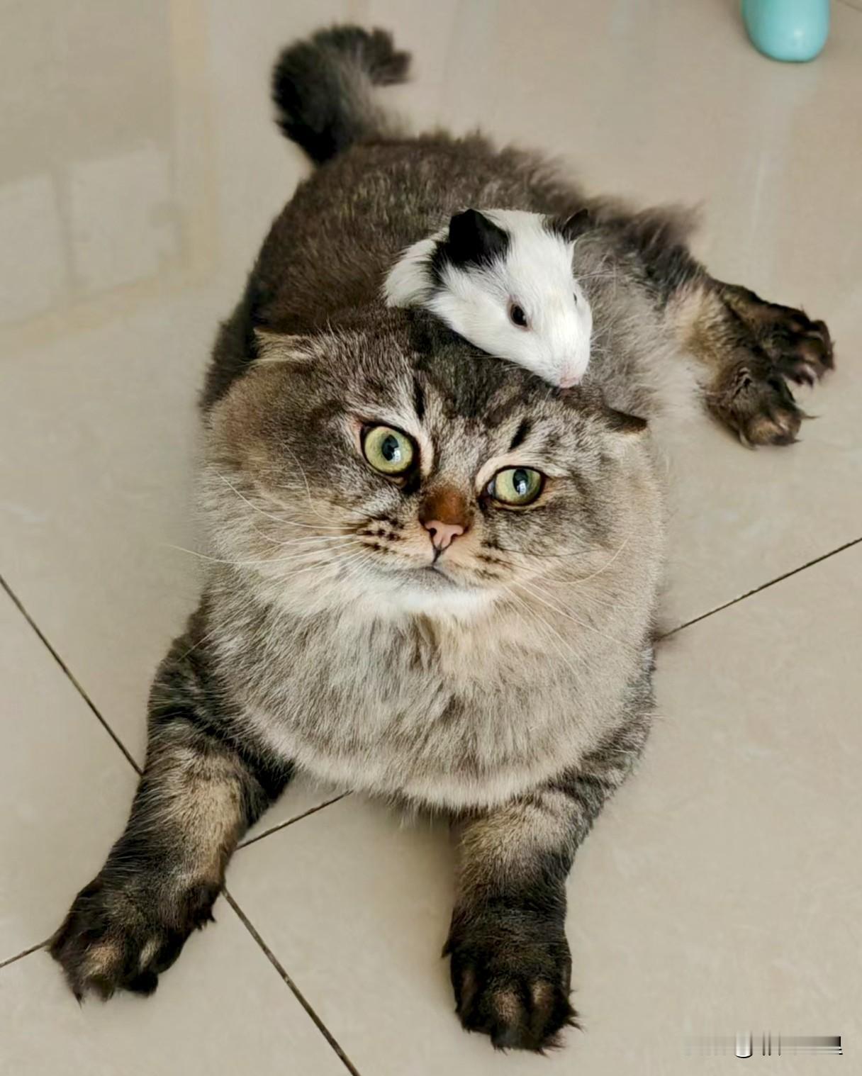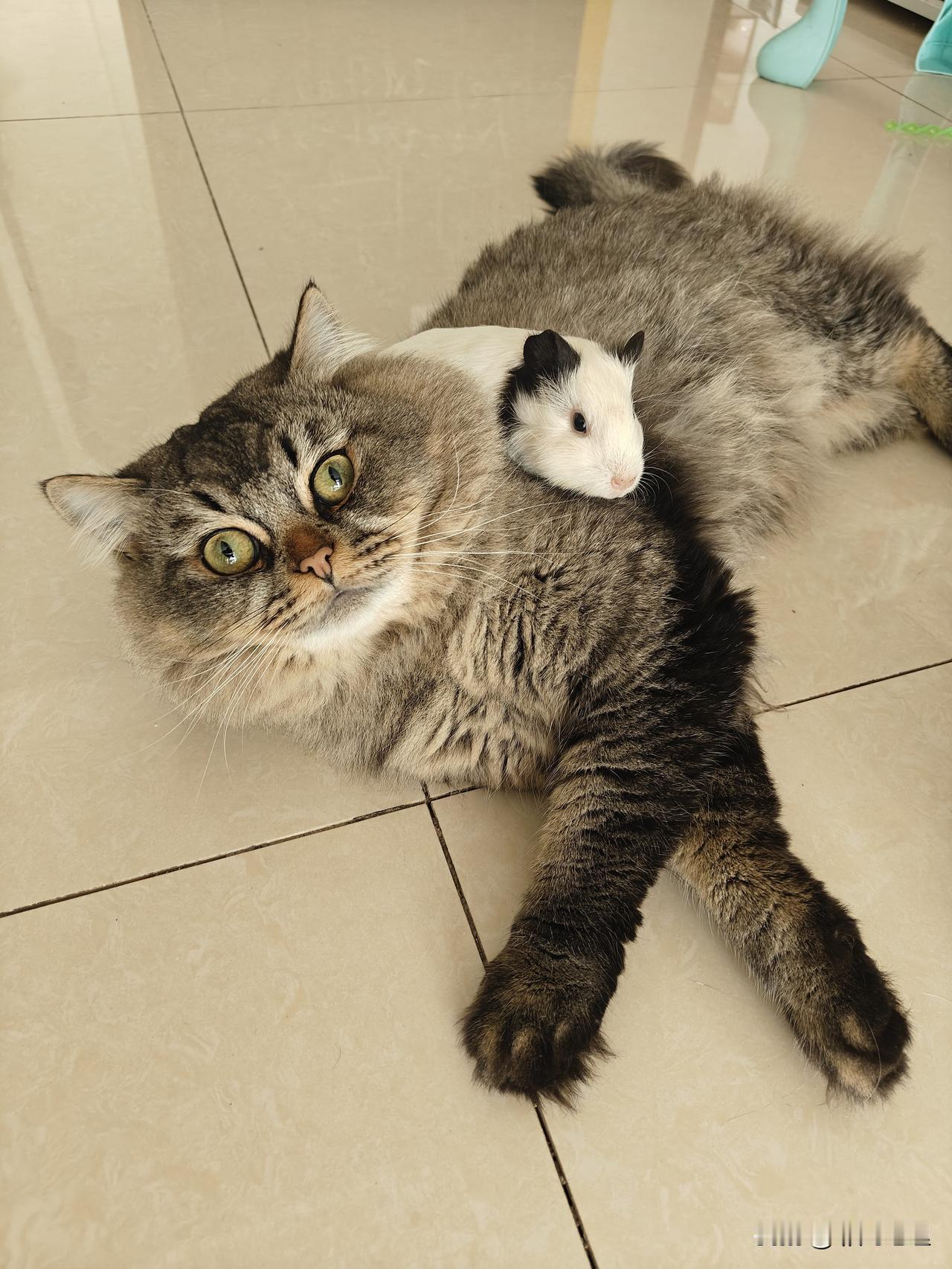 闺女弄了两只豚鼠,放在笼子里,小猫还过去看看,伸着爪子还敢抓一抓,但是一旦把豚鼠放出来,小猫是一动不敢动!