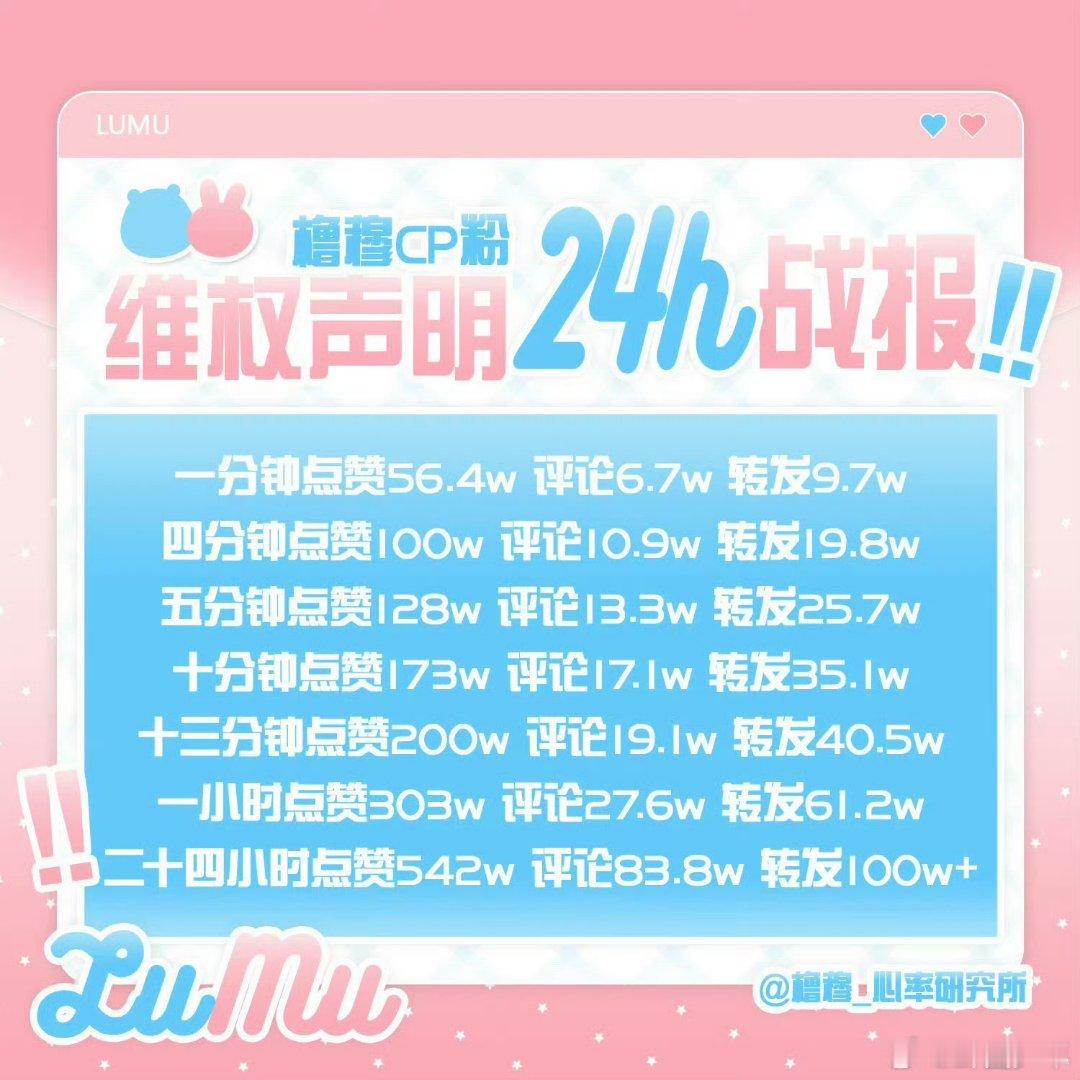橹穆CP粉维权声明战报橹穆CP粉维权声明24h战报 这份24小时战报也太亮眼了,橹穆CP粉同心协力,数据实力狠狠惊艳所有人!