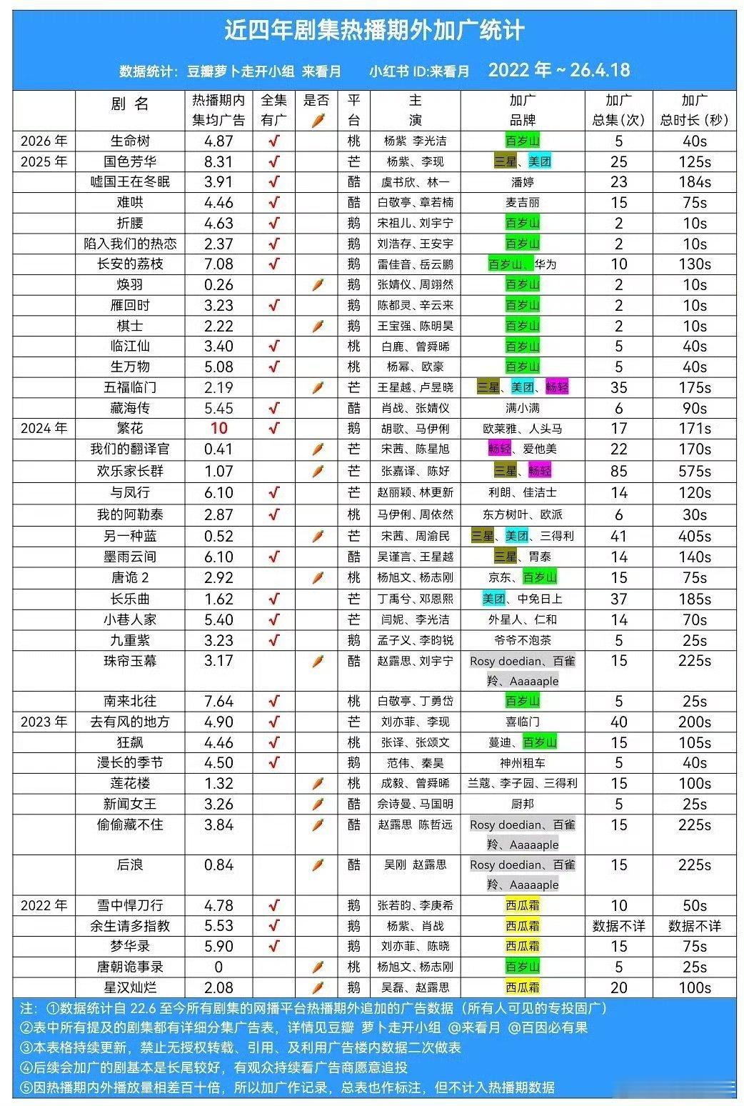 杨紫主演《生命树》的广告总时长1948s,她有多优秀呢?我们参考一组数据:❶张凌