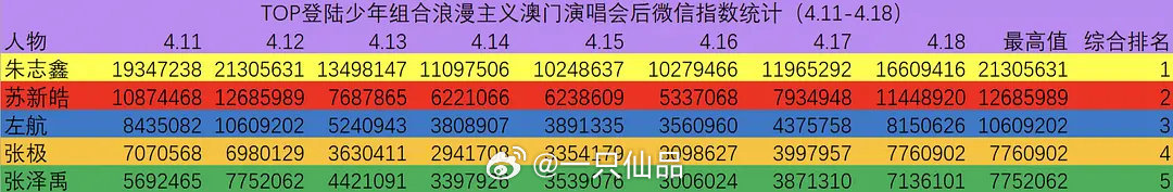 澳门演唱会一周内全平台热度统计朱志鑫全平台竖据大断层第一,演唱会出圈第一人、长尾效应最强朱志鑫 051朱志鑫