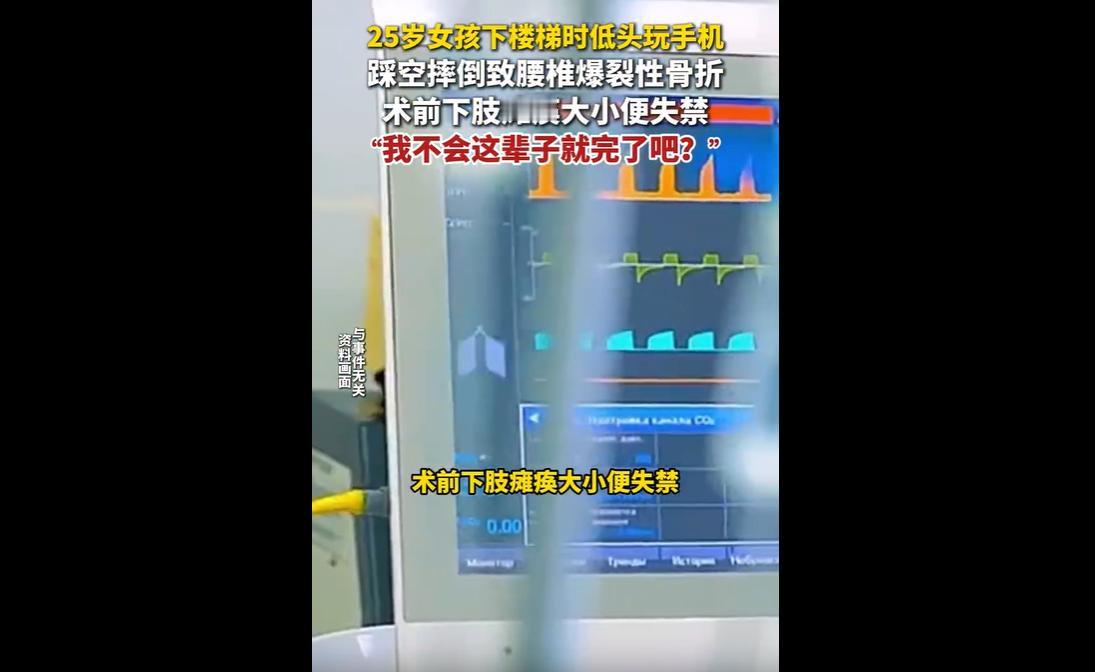 近日,25岁女子小秋在下楼梯时,因专注低头玩手机未注意脚下,不慎踩空摔倒,造成腰椎爆裂性骨折,术前出现下肢瘫痪、大小便失禁的症状。