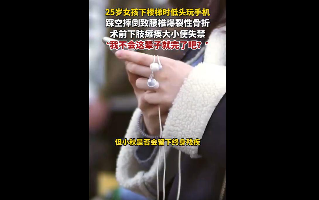 小秋只是像我们很多人一样,上下楼梯时低头刷手机,觉得“就看一眼,没事的”,可就是这一瞬间的分心,让她付出了惨痛的代价。