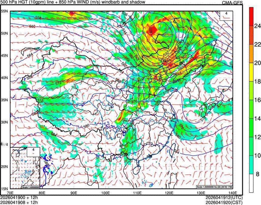 23日以后,随着高空槽东移,高空逐渐转为槽后脊前的西北气流,低空偏北风也占据主动,南方的降雨向南收缩,24-26日江南基本无降水,但华南部分地区还有较强降雨。此外25-26日还有高空槽东移+低空低涡发展,华北26日可能还有降水出现。