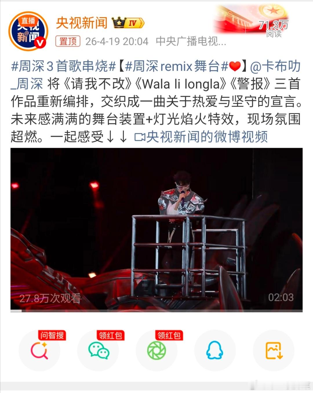 周深remix舞台周深3首歌串烧 周深《请我不改》《Wala li longla》《警报》串联成完整故事线。好特别!大家听了吗