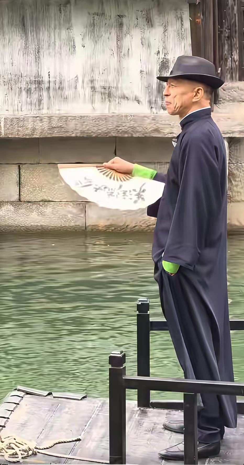 张朝阳穿着长衫,带着礼帽站在船头,想装个地方党员来接头。露出绿袖暗号,老练地下交通站队员怀疑他会不会判变了。
