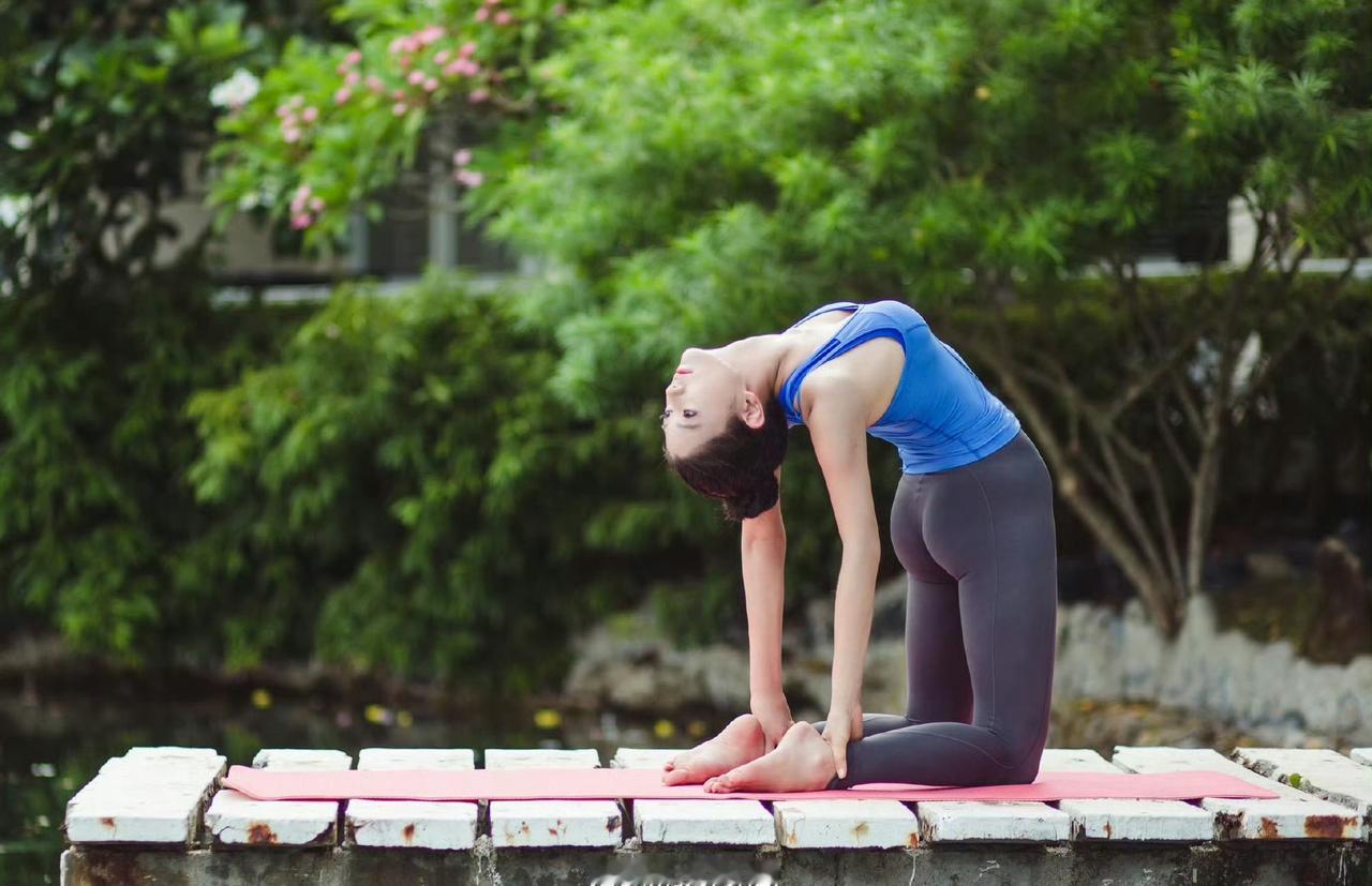 绿荫漫道,光影斑驳。灰衫贴肤,勾勒活力轮廓;瑜伽裤裹身,漾起流畅曲线。跳绳