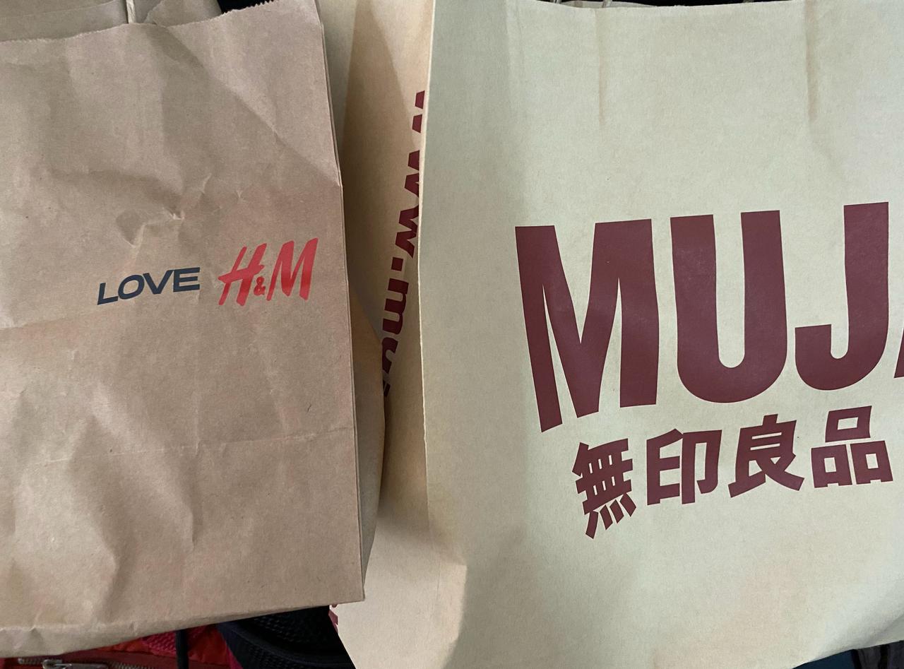 出门前收了下垃圾,这两个纸袋放沙发上一直没理[笑哭],HM里的收银单三百多块钱的不是我买的衣服单[笑哭],我买的是30元的,好看质量又好,昨晚我穿的就是那件,洗干净晾上天台了。