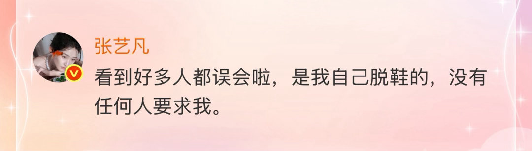 更新张艺凡本人回应:是自己脱鞋的,没有任何人要求我。